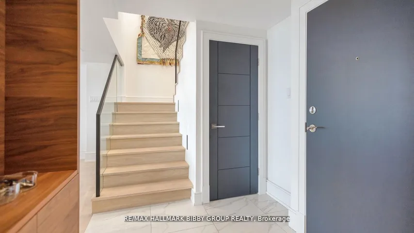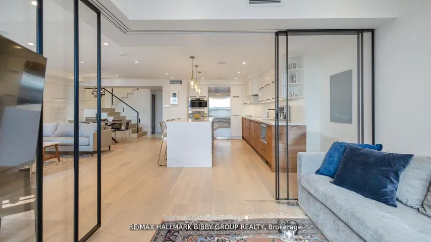 Welcome to your urban cottage in the heart of the city! This stunning 2,000+sq.ft., two-bedroom plus den townhome featured in the Globe & Mail “Home of the Week” offers a rare combination of sophisticated urban design, cottage-country serenity, and an unparalleled lifestyle where culture meets nature. Steps to the waterfront trail, Billy Bishop Airport, streetcar, Union Station, three major grocery stores and the Gardiner Expressway is quickly accessible for easy commuting.With unobstructed lake views from all windows and two sun-drenched, south-facing terraces overlooking Lake Ontario, this meticulously designed residence showcases immaculate attention to detail and superior craftsmanship throughout. As you step through the heated floors of the entrance, floor-to-ceiling windows frame spectacular 180-degree views of Lake Ontario and the Toronto Islands, flooding the space with natural light and offering an ever-changing canvas of water, sky, and sailboats. The residence features new wide-plank white oak flooring throughout, custom millwork, and integrated smart home features including in-ceiling speakers and Wi Fi.The European-inspired chef’s kitchen features top-of-the-line professional-grade appliances and an oversized island with generous seating for four, providing ample storage and preparation space. The open-concept design flows seamlessly from the kitchen to the living and dining areas. The dining space features a built-in temperature-controlled wine storage system, while the living area showcases custom built-ins, thoughtfully placed art niches, and a cozy modern electric fireplace that serves as a focal point for gatherings. The versatile den-enclosed by premium Aladdin trackless glass doors imported from Italy-serves as a sophisticated home office or an intimate media room. A generous 258-sqft terrace extends the living space outdoors, offering the perfect full-width private oasis with jaw-dropping lake views for both sunrise coffee and sunset cocktails.