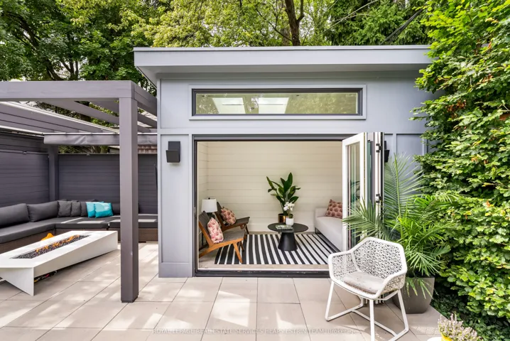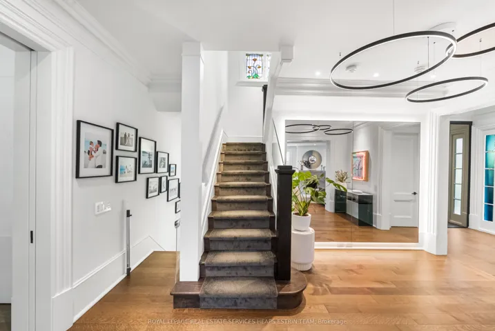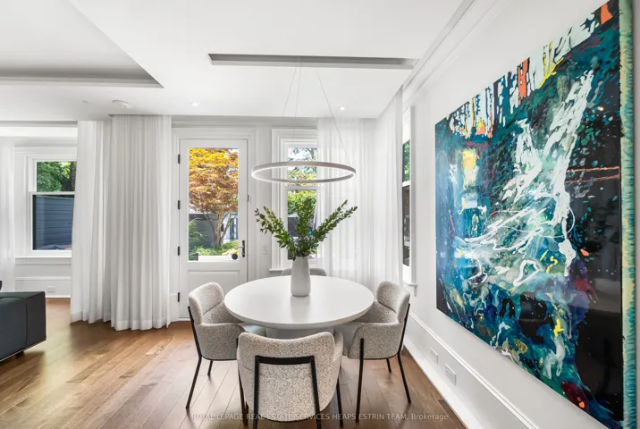 A rare blend of heritage charm and modern sophistication, 150 Douglas Drive is a bespoke residence that perfectly captures the essence of Rosedale living, refined, timeless, and deeply connected to nature. Meticulously redesigned by renowned architect Johnson Chou, this home exudes warmth and intention. Interiors are elevated by sculpted ceilings with ambient lighting, in-floor radiant heating, and fully integrated Control4 smart home technology, including fully automated lighting and irrigation systems. Built-in sound spans most of the home and outdoors, complemented by a home theatre system in the family room.The living room is anchored by a striking quartzite fireplace, while the elegant dining room stuns with a custom wine feature. The Poliform kitchen is a dream for the home chef, complete with a large island, premium appliances, and a sunlit breakfast area overlooking the backyard oasis. The adjacent family room offers a relaxed and inviting space to unwind.Outside, a resort-style backyard awaits with a heated Bonavista pool, waterfall feature, and expansive composite deck. A cabana, pergola with built-in television, fire table, and curated lighting create a private outdoor retreat.Upstairs, the primary suite offers vaulted ceilings, dual walk-in closets, and a spa-inspired ensuite. Two additional bedrooms and a stylish family bath complete the second floor. The third floor features a large bedroom and a flexible second room that can serve as either a den or an additional bedroom, along with a full bathroom.The lower level offers excellent ceiling height, a separate entrance, recreation room, office, bedroom, full bath, and bright laundry with pet shower. Additional features include heated front pad and walkways, and a wide mutual drive with backyard access.Beautifully situated on a prime stretch of Douglas Drive, just steps from Chorley Park, ravine trails, and Summerhill shops.