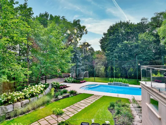 A truly one-of-a-kind estate showcasing an NBA-calibre professional sports court, set on over 1.3 acres of breathtaking ravine vistas. This exceptional residence is clad in timeless limestone and offers an uncompromising standard of luxury, craftsmanship, and design. Boasting over 9,390 square feet above grade, plus an extraordinary 6,042 square foot lower level featuring a full basketball court, this home is the ultimate in grand-scale living and entertaining. No expense has been spared, with soaring ceilings, bespoke finishes, and meticulous attention to detail throughout. State-of-the-art technology enhances every aspect of the home, including a fully integrated Control4 automation system, Alexa connectivity, and a spectacular home theatre with 4K projection and a 152-inch screen. The main level features a private in-law suite, an elegantly panelled library, and a chef-inspired kitchen complete with a wood chopping block, expansive centre island, and built-in refrigeration-designed for both everyday living and elevated entertaining. The primary retreat is a sanctuary of indulgence, highlighted by a lavish 11-piece onyx marble ensuite and a custom-designed dressing room. Outdoors, the estate transforms into a dream resort-style oasis, complete with a stunning pool, private soccer field, outdoor bar and kitchen, granite fire pit, and an expansive stone terrace-perfect for hosting or unwinding in complete privacy. This estate is just minutes to highway access, top public and private schools and boutique shops and eateries nearby.