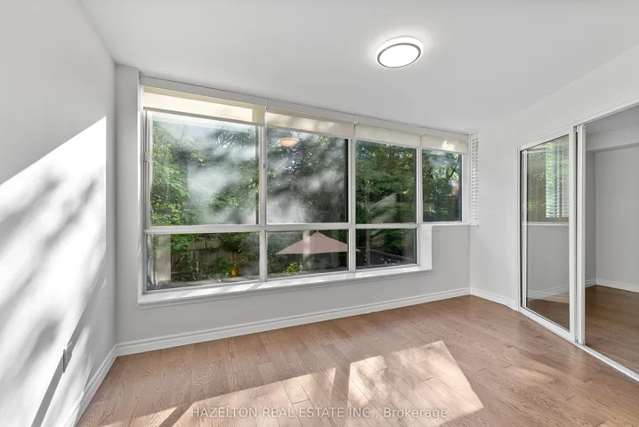Welcome to 225 Davenport, a boutique residence where this spacious 1+ den plus sunroom offers rare comfort and charm right at the edge of Yorkville. Bathed in morning light from its east-facing windows, the suite enjoys peaceful garden and treetop views, far removed from the hum of Avenue Road and Davenport. Inside, smooth ceilings (no popcorn), an upgraded kitchen with a brand new electric stove, and fresh window coverings create a move-in-ready home that feels both refined and inviting. The generous living space makes it easy to entertain or simply unwind, complemented by a spacious bedroom that fits a full furniture set and features a walk-in closet and is finished with timeless wood shutters that add a touch of charm and character. A separate den off the entry provides flexible space for a home office, while the sunroom expands the living area with a serene garden outlook. The large bathroom with a Jacuzzi-style tub and a small laundry room with ample storage add everyday convenience. The building itself is known for its friendly staff, amenities include a phenomenal rooftop terrace with skyline views and BBQs, a well-equipped gym and stylish party room. Just steps to Yorkville’s world-class shops, dining, and cultural scene, this home stands out as a rare opportunity, offering unbeatable square footage at almost 900 sqf, quality and value in a neighbourhood where space comes at a premium. All utilities included in the maintenance fees.