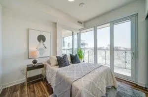 Executive Southeast Corner Suite | Unobstructed Lake & City Views. Experience elevated urban living in this expansive just under 1,200 sq. ft. executive suite, perfectly positioned on the southeast corner to capture breathtaking, panoramic views of both the lake and the city skyline. This meticulously designed residence offers a rare combination of scale, sophistication, and outdoor space, featuring a massive almost 400 sq. ft. wraparound balcony-your own private oasis in the sky. Suite Highlights: Spacious Layout: Nearly 1,200 sq. ft. of interior living space with an open-concept flow and floor-to-ceiling windows that flood the home with natural light. Versatile Bedrooms: Three generous bedrooms with two master bedrooms plus a dedicated den, perfect for a professional home office or library. Luxury Bathrooms: Three full, modern washrooms offering maximum convenience and privacy for residents and guests. Building only has 18 floors and has a boutique feel with this unit being amongst the largest units. This Condo is extremely versatile and can be converted into a 2 bedroom plus den with 3 washrooms adding the third bedroom to the living space. Please see floor plan for details.