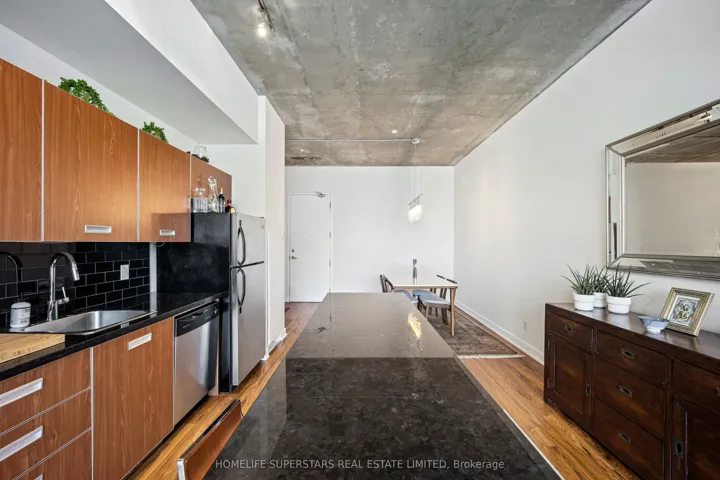 Welcome To Sixty Lofts! Experience the perfect blend of style and convenience in this stunning 933 sq. ft. loft, ideally situated in Toronto’s vibrant Niagara District. Showcasing a true industrial aesthetic with exposed ductwork, soaring 10-foot concrete ceilings, and a spacious open-concept layout, this unit offers an exceptional backdrop for entertaining and everyday living alike.A standout feature of this suite is its unmatched closet storage – the largest in the building – complete with custom closet organizers designed to maximize functionality without compromising style. Storage like this is a rare find in loft living.The living room boasts panoramic city views that are sure to impress your guests, whether you’re hosting before a night out on King West or enjoying an intimate evening at home. The building also features a rooftop deck and a party/meeting room.The modern sophistication and industrial charm create an atmosphere that elevates every occasion.An additional highlight is the versatile den, ideal for working remotely. Located just steps to TTC, Farm Boy, and an incredible selection of world class restaurants and King West nightlife, this address truly offers the best of city living right at your doorstep. With so much to see and do, you’ll never experience a dull moment at Sixty Lofts.
