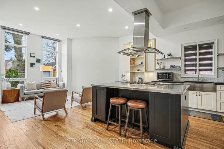 Welcome to 423 Manor Rd E, a beautifully renovated 2.5-storey detached home on a quiet, tree-lined street in the heart of Leaside-one of Toronto’s most sought-after family neighbourhoods. This 4-bedroom, 4-bathroom home offers approximately 2,300 sq ft of thoughtfully designed living space, blending modern upgrades with functional design. The main level features soaring 11-foot ceilings and oversized windows that fill the home with natural light. The chef-inspired eat-in kitchen serves as the central hub of the home, featuring built-in Miele appliances, a large centre island with extra seating, and an open-concept layout that flows seamlessly into the family room-ideal for both entertaining and everyday living. The upper levels offer three spacious bedrooms, two private terraces, and a versatile third-floor loft ideal for a home office, gym, or additional bedroom. Backing onto a top-rated junior school, the home enjoys exceptional privacy with no rear neighbours.The finished lower level includes a separate entrance, full kitchen, spacious recreation area, and bedroom-ideal for in-law or income potential-with a walk-up to a beautifully landscaped backyard. Extensively upgraded throughout, notable improvements include: updated electrical panel (200 amp), new furnace and A/C (Carrier, under warranty), ductless A/C in the loft, new washer and dryer, Andersen storm doors, new blinds, including motorized floor-to-ceiling in the living room, and a full security system. Interior updates include fresh paint, new carpeting, updated lighting, and renovated second-floor bathrooms (2025).The exterior has been thoughtfully enhanced with a renovated front porch, redesigned backyard featuring turf, fencing, irrigation (front and back), decorative lighting, and mature tree trimming. Additional updates include renovated rear stairs to the basement, upgraded cold room, and fully renovated terraces with new flat roof tiling.Don’t miss out on this amazing home in an unbeatable location!