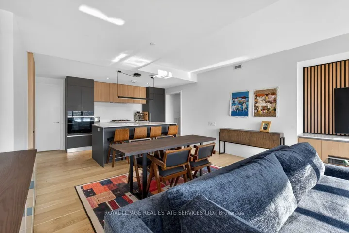Experience the pinnacle of refined urban living in this meticulously crafted two-bedroom plus-den, two-bathroom residence at 1414 Bayview Avenue. Situated on the fifth floor of an exclusive boutique building, Suite 502 blends modern sophistication with timeless elegance. Spanning 1,345 square feet, the thoughtfully designed layout offers both comfort and privacy, complemented by a versatile den ideal for a home office ornursery. The open-concept living and dining areas are bathed in natural light through wall-to-wall, south west-facing windows, enhanced by soaring ceilings and rich hardwood floors throughout .Both bedrooms enjoy tranquil west-facing vistas. The primary suite impresses with a custom walk-in closet and a spa-inspired en-suite featuring a floating double vanity, recessed lighting and walk-in rainfall shower. The second bedroom offers generous closet space, while a-sleek three-piece bath with floating vanity and walk-in shower sits conveniently off the entryway. A dedicated laundry room adds everyday functionality.This exceptional residence includes one parking space and a large storage locker. 1414 Bayview Avenue is a boutique building with just 44 luxury suites, celebrated for it’s elegant design, intelligent layouts, and premium finishes.