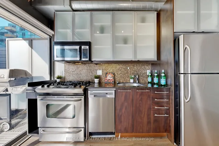 Stylish loft living in the heart of Toronto’s vibrant Fashion District. This spacious 1 bedroom suite showcases authentic loft character with exposed concrete ceilings and walls, exposed ductwork, and expansive floor to ceiling windows that flood the space with natural light. The open-concept layout is both functional and inviting,and seamless flow from living to dining. The kitchen is equipped with a gas cooktop, stainless steel appliances, granite countertops, mosaic backsplash, frosted upper cabinetry, and ample storage. The living area opens to a private balcony complete with a gas BBQ hookup, a rare and convenient feature for outdoor dining. Situated in the heart of the Fashion District, you are just steps from Queen West, King West, restaurants, cafés, shops, parks, groceries and convenient transit options.