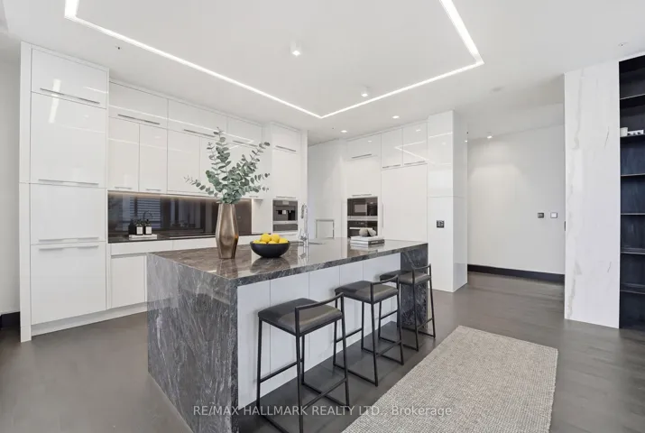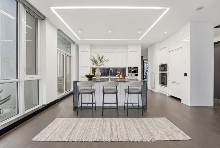 Penthouse 01 at 199 Richmond presents a rare opportunity to own one of only two penthouse residences in this exceptionally well-positioned building within the heart of the entertainment district. This three-bedroom, three-bathroom suite offers a refined layout with thoughtful upgrades throughout, combining clean contemporary design with elevated materials and finishes. The custom kitchen is designed for both function and presentation, featuring built-in Miele appliances, a waterfall island, and a combination of Caesarstone, granite, and quartz surfaces, all anchored within open-concept living and dining spaces that frame expansive city views. The primary suite is positioned as a private retreat, offering generous proportions, a walk-in closet, and a well-appointed spa-inspired bathroom, complemented by a built-in bookcase that adds both character and utility. South and west exposures provide sweeping views across the lake, the Rogers Centre, and Roy Thomson Hall, bringing natural light into the suite throughout the day. Finished with engineered hardwood flooring, marble detailing, and custom vanities, this residence presents a well-executed penthouse opportunity with direct access to the city’s dining, cultural, and entertainment offerings just steps from the front door.