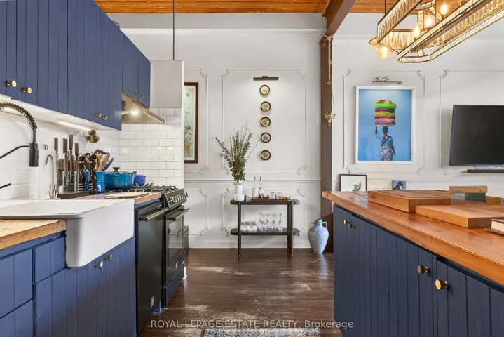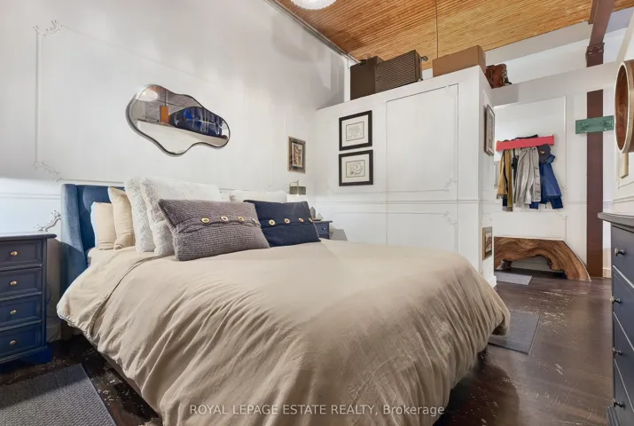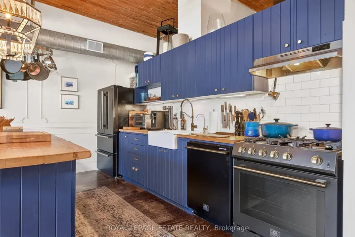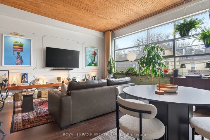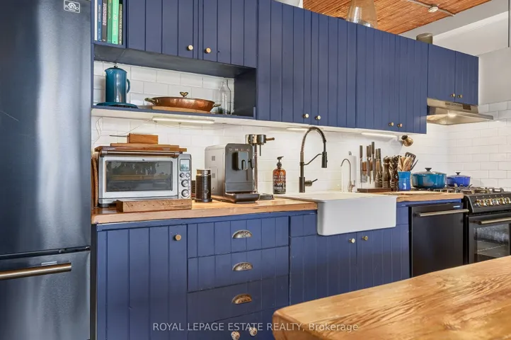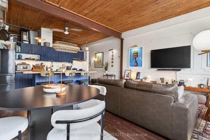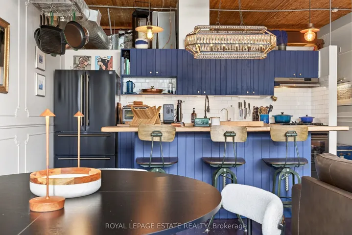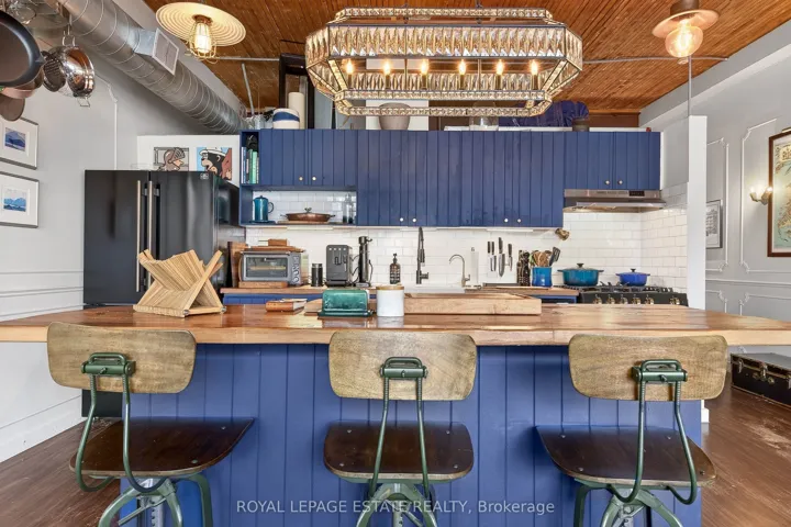 Is there anything more Toronto than a hard loft? This 1 bedroom, 1 bathroom suite at Century Lofts is a rare find with 841 SQFT of open concept space in a a beautiful, boutique, converted building built in 2000. Framed by oversized warehouse-style windows, bringing in incredible natural light, complimented by polished concrete floors with a subtle wood grain finish to add warmth to the industrial vibe. The open concept layout is anchored by an updated kitchen with blue cabinetry, butcher block countertops, and a full suite of brand new Forno appliances, including a new gas line to the proper gas range with cast iron details. This space is as functional as it is inviting. Open, flexible and easy to live in: it works just as well for quiet nights as it does for hosting. Important updates have already been taken care of, including a new furnace (2026), owned tankless water heater (2026), water softener (2026), reverse osmosis system (2026), and air conditioner (2022). Century Lofts offers all the amenities you need in a private boutique building, including a rooftop terrace with BBQs, gym, and party / meeting room. Located in the heart of downtown, steps from TTC, cafes, restaurants and everyday essentials. Includes 1 parking and 1 locker. NOTE: Maintenance fee includes internet + cable and low gas/hydro costs.