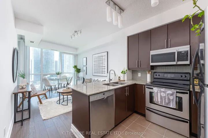 Welcome To The Success Tower At The Prestigious Pinnacle Centre. Perched Above Toronto’s Waterfront, This Stunning 2-Bedroom Suite Delivers Sweeping West-Facing City Views With Breathtaking Sunsets That Can Be Seen From Every Room – A Dramatic Backdrop You’ll Never Tire Of. The Warm Kitchen Impresses With Sleek Stainless Steel Appliances, Granite Countertops, An Undermount Sink, Under-Cabinet Lighting, And A Breakfast Bar – Ideal For Both Everyday Living And Entertaining. The Open-Concept Living Space Boasts Natural Light Enhanced By 9-Foot Floor-To-Ceiling Windows, Premium Hardwood Flooring Throughout And A Balcony Offering Partial Lake Views. Retreat To The Oasis Of The Primary Bedroom, Complete With A 3-Piece Ensuite And A Spacious Walk-In Closet. Enjoy The Comfort And Convenience Of A Well-Managed Building With Top-Tier Amenities (Featuring An Indoor Pool, 2 Hot Tubs, Sauna, Steam Room, 2 Gyms, Tennis Court, Squash Court, Party Room And More) All In An Unbeatable Central Location With Easy Access To Major Highways And Only Steps To Toronto’s Harbourfront, Union Station, The Underground P.A.T.H., Financial District, Scotiabank Arena, C.N. Tower, Rogers Centre, Ripley’s Aquarium, And More. Enjoy The Multi-Use Martin Goodman Walking, Running And Cycling Trail Across The Street With Parks, Restaurants, Cafes, Lounges And More. This Home Is Perfect For Professionals, Couples Or Small Families Seeking The Best Toronto Has To Offer At Their Doorstep.