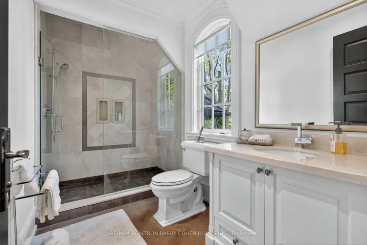 Set On A Quiet, Secluded Crescent, This Exceptional Château-Inspired Estate Offers A Rare Combination Of Privacy, Scale, And Breathtaking Ravine Views Overlooking Rosedale Golf Club And Its Lush, Tree-Lined Surroundings. The Home’s Striking Façade Showcases A Timeless Blend Of Natural Stone And Beldon Brick, Complemented By A Cedar Shake Roof And Elegant Copper Eavestroughs. A Grand Natural Walnut Slab Front Door Welcomes You Inside, Alongside The Convenience Of A Triple-Car Garage. Spanning Over 9,000 Sq Ft Of Refined Living Space, Including A 3,000 Sq Ft Fully Finished Lower Level.. Crema Marfil Marble Slab Flooring Flows Through The Impressive Foyer And Hallways, While Abundant Natural Light Enhances The Home’s Warm And Inviting Atmosphere. Thoughtfully Designed For Both Entertaining And Everyday Living, The Main Level Features A Walnut-Panelled Library, A Formal Living Room, And An Oversized Family Room. The Gourmet Kitchen Is Beautifully Appointed With A Waterfall Island And A Separate Dinette, Perfect For Casual Gatherings.An Elevator And A Sweeping Limestone Staircase Connect All Levels With Ease. The Primary Suite Is A Private Retreat, Introduced Through An Ante Room And Complete With A Sitting Area, Dual Ensuites, And Two Generous Walk-In Dressing Rooms. The Lower Level Elevates The Home’s Lifestyle Appeal With A Large Recreation Space, Fully Equipped Kitchen, And A Three-Tiered Home Theatre. Wellness Amenities Include An Exercise Room With An Adjoining Sauna And Hot Tub, While A Nanny’s Suite With Kitchenette Offers Added Flexibility. A Walkout Leads To The Professionally Landscaped Grounds, Where Stone Terraces, A Pool, And Outdoor Entertaining Areas Create A Tranquil, Resort-Like Escape Framed By Stunning Natural Vistas.