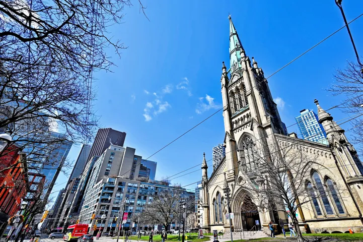 Welcome To This Beautiful And Spacious 2 Bedroom / 2 Bath Condo At The Highly Coveted King Plaza. This Fully Upgraded Unit Features An Elegant, Open Concept Layout W/ Premium Laminate Flooring Throughout. The Bright Combined Living / Dining Area Is Accented W/ A Gorgeous Veneer Stone Wall & Electric Fireplace. ……………….. Tons of Modern, High Quality Touches Throughout, Including Fresh Designer Paint & Premium Light Fixtures. Featuring A Modern Gourmet Kitchen W/Custom Cabinetry & Backsplash, Premium Stainless Appliances, Including An Induction Stove, Bosch Dishwasher & Large Fridge, Quartz Counters, Breakfast & Coffee Bar. The Spacious Primary Bedroom Features A Sunny Solarium That Can Function As An Office Space, & Comes Complete W/ A 4-Piece Luxury Ensuite & Large Closet. The 2nd Bedroom Is Designed W/ Sophisticated Functionality, W Sleek Built-In Custom Cabinetry And A Murphy Bed, W/ An Adjacent Upgraded 4 Piece Bath. Full Size Washer/Dryer. This Fully Renovated Unit, Offering You A Perfect Downtown Oasis, Comes Complete W/1 Underground Parking Space & 1 Locker For Extra Storage. …………………. The Well-Managed Building Offers Fabulous Amenities, Including 24 HR Concierge, Gym, A Gorgeous BBQ Terrace Overlooking St. James Cathedral, Bike Storage, & Visitor Parking ……………… Don’t Miss This Luxury Suite Conveniently Nestled Between Toronto’s Vibrant Financial District & The Scenic St. Lawrence Market. Boasting A Top Walk Score of 100, Just Moments Away From All The Amenities You Need. Street Car At Door Step. Walk to King Subway Station, St. Lawrence Market, Parks, Daycare, Cafes, Restaurants, Eaton Centre, Union Station, The Path, Toronto’s Top Attractions & More! Quick Access To The Gardiner Expressway & DVP. Your Trendy, Ideal Lifestyle Awaits!