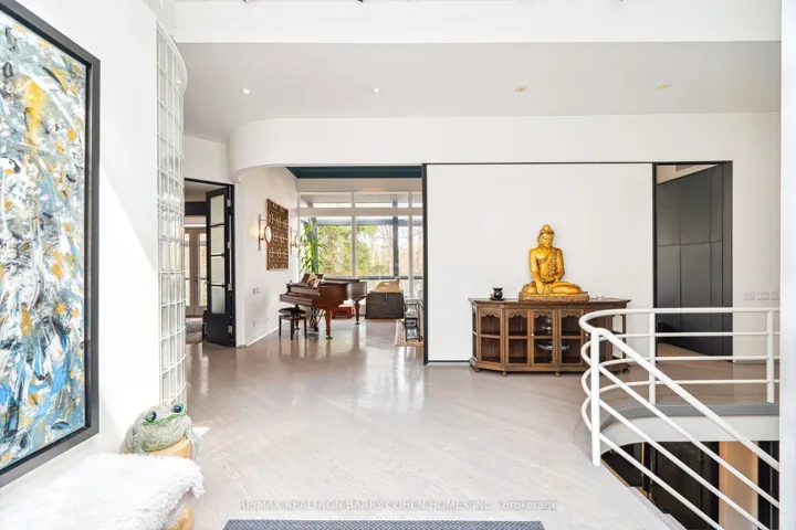 One-Of-A-Kind 5-Bedroom Bridle Path Residence Showcasing Award-Winning Architectural Design. Elegantly Planned For Entertaining & Family Living. Coveted Cul-De-Sac Location & Extraordinary Forest Lot Offers Unlimited Potential. Gated Front Entrance Opens To Lush Professionally-Curated Japanese-Style Gardens. Main Floor Presents Vaulted Skylight Ceilings, Oak Floors & Wraparound Balcony Access From Every Room. Double-Height Entrance Hall Flows Into Formal Living Room W/ 2-Way Fireplace, Dining Room W/ Integrated Wine Cellar & Den W/ Floor-to-Ceiling Custom Bookcases. Expansive Eat-In Kitchen Includes Sunlit Breakfast Area W/ Full-Wall Bay Windows, Well-Equipped Service Kitchen. Primary Retreat W/ Panoramic Forest Views, Media Wall, Fireplace, 5-Piece Ensuite W/ Cedar Sauna, Spacious Walk-In Closet & Office W/ Private Walk-Out Terrace. Lower Level Family Room Designed For Comfort W/ Oak Floors, Fireplace W/ Stone Surround, Built-In Sideboard & Walk-Out To Back Gardens. 4 Lower Bedrooms W/ Full-Wall Windows & Walk-Out Access Points To Backyard. First Bedroom W/ Walk-In Closet & 3-Piece Ensuite W/ Heated Floors, Second Bedroom W/ Adjoining Sitting Area & Private Terrace, Third Bedroom W/ 3-Piece Ensuite & Heated Floors, Fourth Bedroom W/ 4-Piece Ensuite. Large-Scale Storage Closet W/ Walk-In Cedar Closet & Floor-To-Ceiling Shelves, Fully-Appointed Laundry Room. 2 Driveways Linked By Private Lane & 3-Car Attached Garage. A Residence Of Remarkable Individuality & Craftsmanship. Highly Sought-After Address On Quiet Court In Exclusive Bridle Path-Windfields.