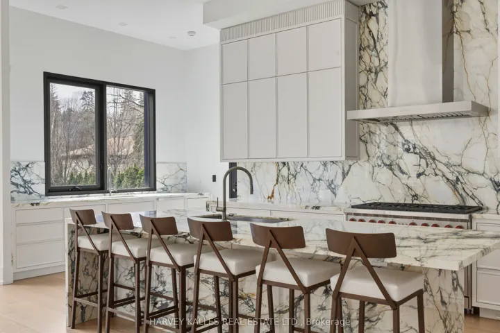 Tucked Away On A Quiet Cul De Sac In Hoggs Hollow And Backing Onto The Serene Grounds Of Rosedale Golf Club, 12 Winton Road Is A Striking Modern Residence By Arriz + Co Design, Set On A Rare Pie Shaped Lot That Blends Bold Architectural Expression With Refined, Livable Luxury. From The Moment You Arrive, A Fireplace Set Into The Front Window Creates An Unforgettable Introduction And Offers A Glimpse Into The Home’s Design. Inside, A Dramatic Concrete Wall Anchors The Staircase, While Skylights And A Suspended Upper Hallway Draw Natural Light Deep Into The Space, Creating A Sense Of Openness Throughout. The Principal Rooms Are Connected And Defined, With The Living And Dining Areas Separated By A Sculptural Three Sided Fireplace, While The Office Is Set Apart By A Built In Aquarium That Adds Calm Without Breaking Flow. The Kitchen Is A True Statement, Outfitted With Top Of The Line Appliances And Wrapped In Marble Slab Surfaces, Seamlessly Connecting To The Family Room And A Rounded Breakfast Bay Overlooking The Private, Tree Lined Backyard. Upstairs, The Primary Suite Features Two Beautifully Designed Dressing Rooms With Custom Millwork And A Spa Like Ensuite, While Three Additional Bedrooms Offer Generous Scale And Their Own Ensuites. A Standout Indoor Outdoor Solarium With Skylights Includes A Hot Tub, Heaters, And A Fridge, Creating A Year Round Retreat. The Lower Level Is Bright And Designed For Entertaining With A Wine Cellar, Full Kitchen, Bar With Built In Marble Island, Gym, And An Additional Bedroom With Ensuite. Outdoors, Heated Steps And Driveway, Curated Landscaping, And A Secluded Backyard With A Custom Gib San Pool And Fire Table Complete This Private Setting. A Rare Offering Where Architecture And Setting Come Together Seamlessly, This Is Escapism In The City.