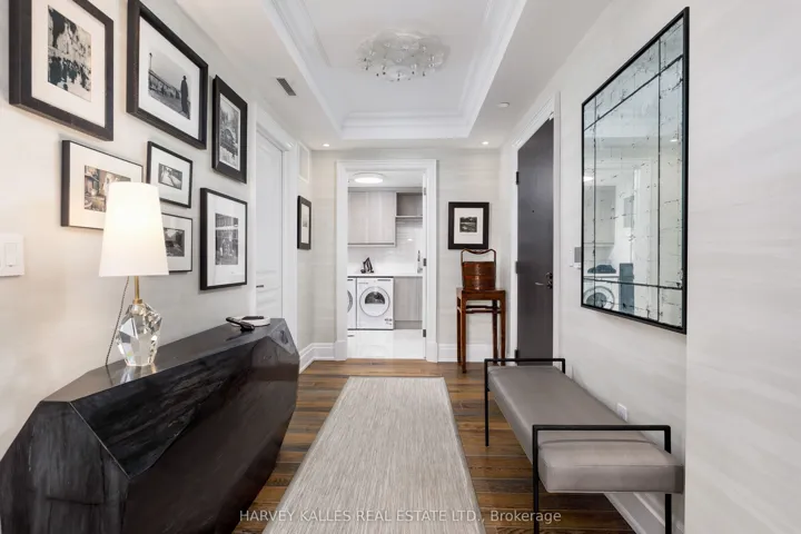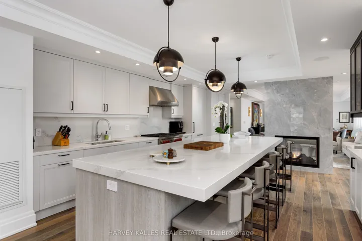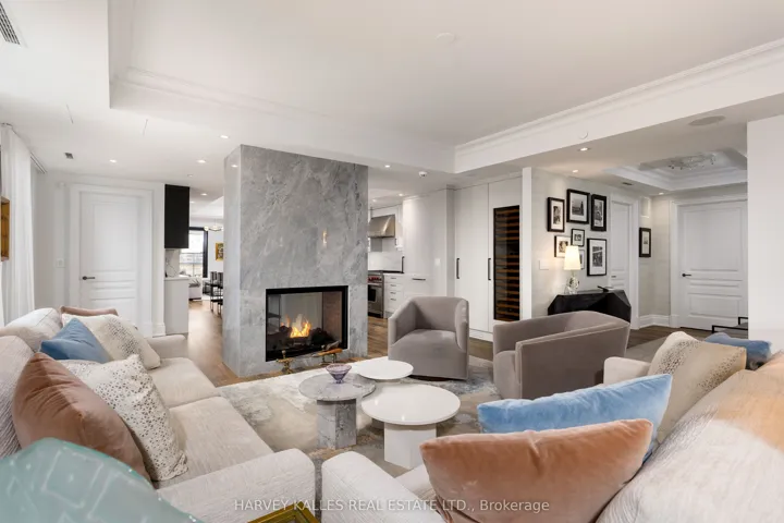 Welcome to the prestigious Residences at One Forest Hill, an exclusive boutique building offering refined living, exceptional privacy, and timeless design in one of Toronto’s most distinguished neighbourhoods. Suite 701 is a rare, extensively upgraded corner residence by Schwartz &Ko.Interior Design. Offering 2,619 sq ft with 2 bedrooms, office, 3 bathrooms & 2 terraces totalling 570 sq ft with North & East exposure. Includes 2 parking & 1 locker. Custom reimagined layout designed for maximum functionality, storage and everyday luxury. Situated on a highly desirable floor with only 3 suites, offering an elevated level of privacy. Open-concept living and dining areas ideal for entertaining & hosting family gatherings, anchored by a double-sided gas fireplace with floor-to-ceiling book-matched marble. Designer kitchen with Sub-Zero & Wolf appliances, additional Sub-Zero fridge & wine cooler, oversized eat-in island, custom walk-in pantry, and built-in bar/glass cabinets. Family room features custom media cabinetry, upgraded millwork and built-in sound system. Private office with French-style glass double doors, custom built-ins & desk with designer finishes. The primary suite is a true retreat with a walkout to 2nd terrace, motorized blinds, custom millwork, spa-inspired his & hers ensuites, steam shower, and a large walk-in closet w/ a Marble centre island. Sizable second bedroom offers floor-to-ceiling windows w/ terrace access & a large walk-in storage closet. The 4-piece guest bathroom features designer wallpaper, a custom vanity with Caesarstone counter & shower tub combo. Equally impressive is the outdoor living with a rare double height terrace exclusive to this level, complete with dual gas lines for BBQ and heater. Full laundry room with Asko washer & dryer, built-ins and sink. Foyer with large walk-in storage. Hotel-style amenities include 24-hr concierge & security, valet, porter service, gym, lounge W/ catering kitchen, party room & visitor parking.