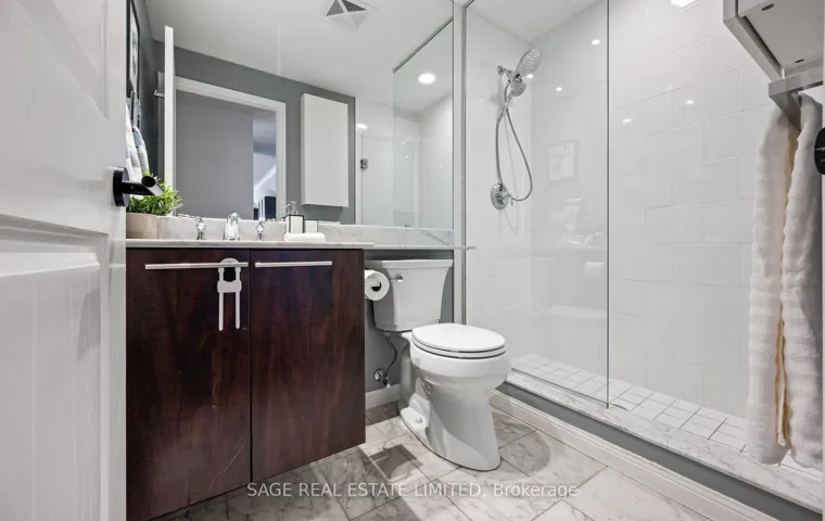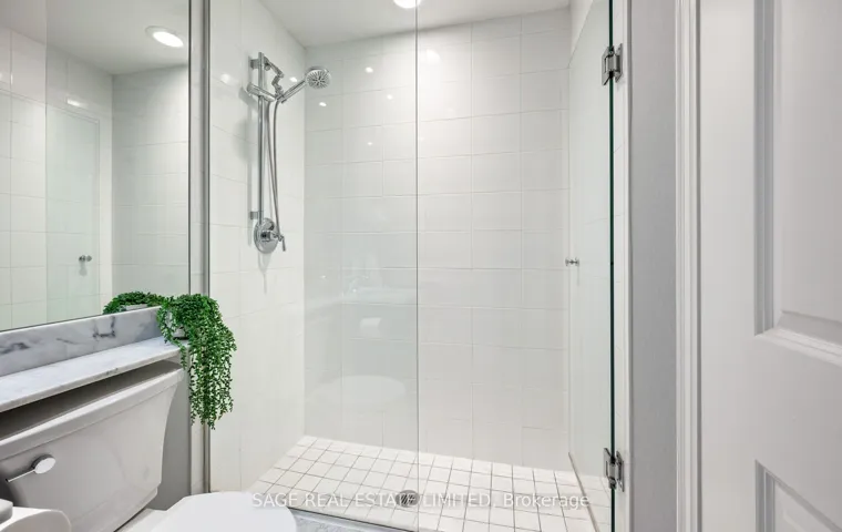 Luxury Waterfront Living at Its Finest! This elegant and spacious corner suite overlooking the park, offers a bright, open-concept layout with 9-ft ceilings, large windows, and modern finishes throughout. Featuring 2+1bedrooms and 2 bathrooms, including a generous primary retreat with 4-piece ensuite and Lutron blackout blinds. The den with French doors is ideal for a home office or guest space. The upgraded kitchen showcases granite countertops, glass backsplash, Kohler gooseneck faucet, and premium appliances including LG fridge & convection stove, Bosch dishwasher, and new washer (2026). Enjoy a large private balcony with $20K Lumon retractable glass enclosure, outdoor heater, electrical outlet, and peaceful tree-top views-perfect for year-round use. Additional features include updated light fixtures, new toilets and hardware, engineered hardwood flooring, heat pump(approx. 4 yrs), and Nest thermostat. Includes parking & locker. Located in a sought-after waterfront community, steps to parks and trails and The Flagship West Block featuring Loblaws, Shopper ect..