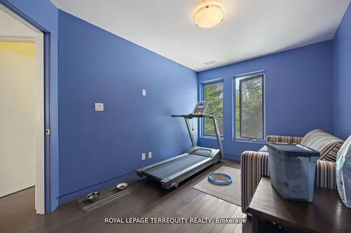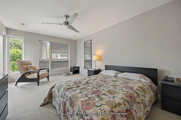 Outstanding architect-designed-and-built home on 4 levels includes a central atrium and an airy 3rd floor Primary suite with 2 decks, a sitting room, skylights, built-ins and a 6-piece bathroom with heated floors. The open floor plan is flooded with natural light and the Pella windows are equipped with built-in blinds. Stainless steel ceiling fans in the high ceilings complement the contemporary design of the floating staircases and the functionality of the dual HVAC. The second floor boasts a unique workstation/storage unit with generous cupboards and a large countertop overlooking the dining room and its glass block feature, as well as the laundry room, 3 bedrooms and 2 full bathrooms, one of them ensuite. The Binns’ galley kitchen and dining room overlook the main floor family room with its wood burning fireplace and walk-out to the deep wooded lot. The recreation room or 5th bedroom also has a walk-out to the garden as well as a 3-piece bathroom. There is direct access to the garage and a separate front entrance on this floor. Located on a quiet, neighbourly, dead-end street in an eminently walkable area, there are three parking spaces. Magnificent Home. Motivated seller.