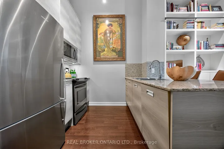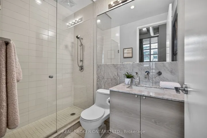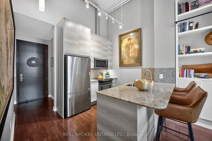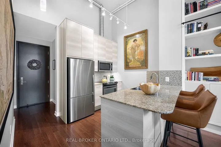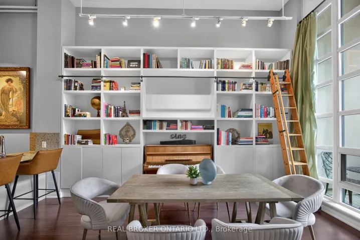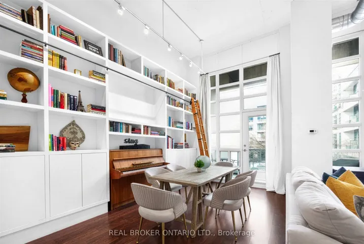 Set within the iconic Madison Avenue Lofts, Suite 209 at 380 Macpherson offers a rare, design-forward take on authentic loft living-where scale, texture, and light come together with quiet intention. Soaring 14-foot ceilings and expansive windows define the space, while exposed concrete, steel ductwork, and industrial detailing create a refined architectural backdrop. A custom floor-to-ceiling bookshelf wall-complete with a sliding ladder-anchors the main living area, introducing both function and statement in equal measure. Originally designed as a two-bedroom, the residence has been thoughtfully reimagined into a generous one-bedroom with an expansive open-concept great room. The living and dining areas flow effortlessly, offering flexibility for both everyday living and elevated entertaining. The kitchen is sleek and modern, finished with stainless steel appliances and a breakfast bar that integrates seamlessly into the space.The primary suite is quietly set apart, framed by a full wall of windows and complemented by its own private balcony, ample closet space, and a well-appointed four-piece ensuite. A second full bathroom adds convenience for guests. Two large balconies extend the living experience outdoors, offering multiple moments to step away and take in the surrounding cityscape.Residents enjoy access to a curated collection of amenities, including a rooftop terrace with unobstructed views toward Casa Loma, complete with BBQs and lounge areas designed for long summer evenings. Additional offerings include a fitness centre, theatre room, party spaces, and concierge service. Underground parking and a second-floor locker are included, with bike storage conveniently located on P1. A rare offering in one of Toronto’s most distinctive loft conversions-effortless, architectural, and quietly iconic.