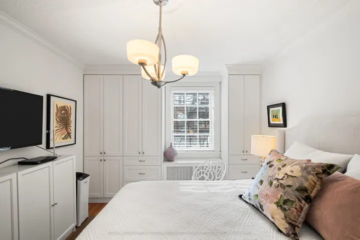 Oh Oriole! A thoughtfully renovated 1930s residence in a prime location between Forest Hill & everything Yonge and Eglinton has to offer, this turn-key two-bedroom suite offers a refreshing alternative to the expected. Set within a quiet, south- and west-facing corner, the home is filled with natural light and defined by its generous proportions, refined finishes, and enduring character. Period details-including crown mouldings and hardwood floors-are seamlessly paired with a curated, modern renovation. The custom kitchen is bot sophisticated and functional, featuring marble countertops and backsplash, a breakfast bar, Bosch appliances, and intelligent storage solutions throughout. The designer bathroom continues the elevated aesthetic with marble accents, a rain shower, and quality fixtures. Living and dining spaces are warm and inviting, anchored by a bespoke built-in library with integrated desk and lighting-ideal for both everyday living and quiet retreat. Both bedrooms are well-scaled, each offering ample storage, custom built-ins, and abundant light. Additional features include Pella windows throughout, custom blinds and light fixtures, dimmable lighting, and extensive in-suite storage. A large, easily accessible building storage locker adds further convenience. Surrounded by beautifully maintained gardens and a strong sense of community, 480 Oriole Parkway is perfectly positioned just moments to the Eglinton LRT, shops, cafés, Summerhill Market, parks, and local amenities. An exceptional opportunity for first-time buyers, down-sizers, the perfect pied-à-terre or investors seeking timeless design and everyday ease in a well-connected neighbourhood. Easy street permit parking. $26.08/month. Buyer to confirm availability with City of Toronto.