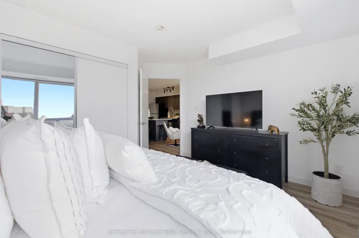 Welcome to this bright and spacious one bedroom + den condo offering 696 sq.ft. of comfortable living space. Thoughtfully designed with luxury vinyl plank flooring throughout and no carpet, this home is both stylish and easy to maintain. The large modern kitchen features full-size stainless steel appliances and a large centre island, providing plenty of space for cooking, dining, and entertaining. The open living area leads to a covered balcony with clear north-facing views, creating a great spot to relax and enjoy fresh air year-round. The versatile den is perfect for a home office, study area, or guest space. Additional highlights include one underground parking space and free underground visitor parking for added convenience. Ideally located just minutes from the subway, major highways, and beautiful parks, this home offers excellent accessibility while still being close to nature. With easy access to transit, shopping, and everyday amenities, this well-designed layout is perfect for first-time homebuyers, professionals, or investors alike.