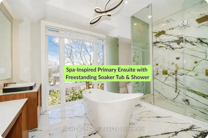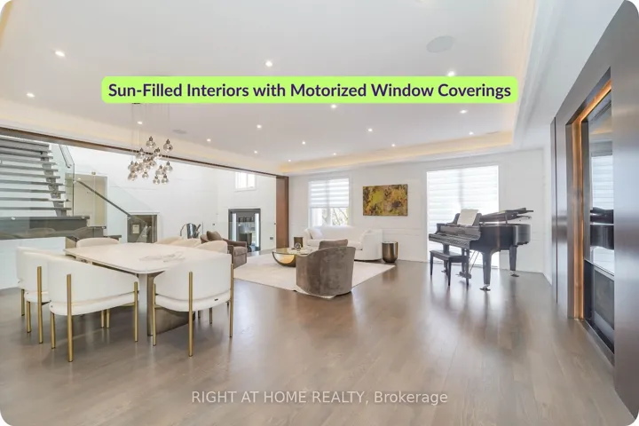 Rare Steel-Framed Custom Home on 60 Ft Lot in Willowdale. This custom-built architectural smart home delivers over 6,000 sq ft of refined, design-forward living. Constructed with steel framing, it offers superior durability. A grand foyer with soaring ceilings and skylights creates a dramatic first impression, while five skylights throughout the home enhance natural light and openness. The main level features 13-ft ceilings, clean architectural lines, and expansive windows that fill the space with light. Curated finishes in white oak and walnut add warmth and sophistication throughout. The designer kitchen offers custom cabinetry, premium finishes, a full wall pantry, and an oversized island overlooking the backyard, seamlessly connecting to the principal living and dining areas. The home features 5+1 bedrooms and 7 bathrooms, including a luxurious primary retreat with a spa-inspired ensuite, dual shower systems, and custom built-in closets. The fully finished walk-out lower level includes a spacious recreation area, heated floors, additional bedroom, and second laundry-ideal for entertaining and multi-generational living. Additional features include smart home automation, built-in speakers, security system with cameras, LED lighting, custom chandeliers, glass railings, and refined white oak and walnut finishes. Exterior highlights include a hand-cut limestone façade, leaf filter gutter protection, and a private backyard with a swim spa and hot tub. A fully upgraded garage features a steel garage door and epoxy flooring.Ideally located near top schools, parks, Bayview Village, and transit.