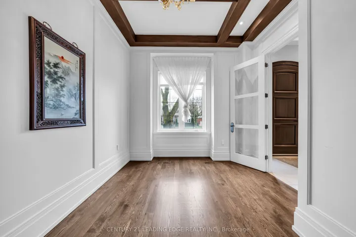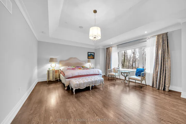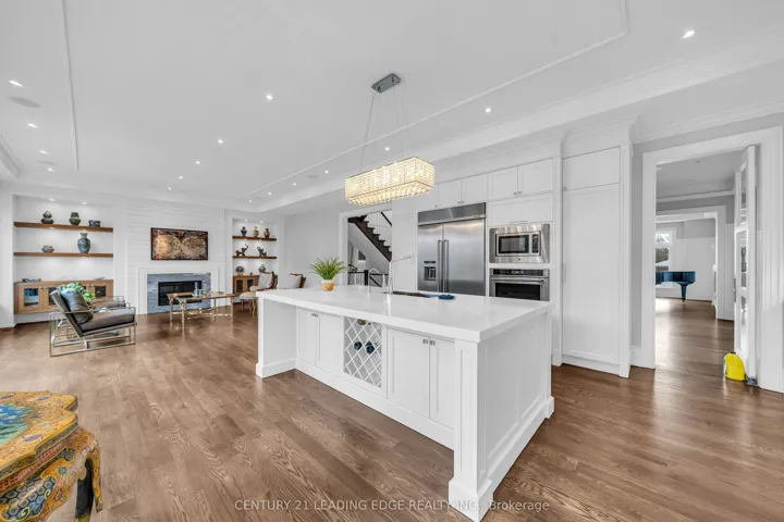 Welcome to 256 Park Home Ave! Stunning custom-built residence showcasing timeless elegance and exceptional craftsmanship. Situated on a beautifully landscaped lot with no sidewalk, this impressive home offers over 6,000 sq. ft. of luxurious living space, including 4,200 sq. ft. above grade and a professionally finished walk-up basement. Designed with a fantastic layout and seamless flow, the home features 10-ft ceilings on the main floor and basement, and soaring 11-ft ceilings on the second level. Rich hardwood flooring extends throughout the main and second floors, complemented by crown moulding, elegant wainscoting, and a blend of LED and halogen pot lighting. A grand staircase with oak steps and iron railings adds to the home’s refined character. The expansive living and dining areas are perfect for entertaining, while the chef-inspired kitchen boasts high-quality cabinetry, stainless steel appliances, Caesarstone countertops, and a spacious breakfast area with walk-out to a large deck, patio, and private backyard. Natural light floods the home through a striking central skylight above the main staircase, along with additional skylights in the second-floor laundry room and a secondary bedroom bathroom. The breathtaking primary suite features a dramatic canopy ceiling, a large walk-in closet, and a luxurious 7-piece ensuite with heated floors. Each bedroom includes its own modern ensuite bathroom, offering ultimate comfort and privacy. The professionally finished walk-up basement is designed for both relaxation and entertaining, complete with heated floors, a fireplace, wet bar, and a nanny or in-law suite with bedroom and 4-piece bath. Additional highlights include three fireplaces throughout, a double-car garage with EV charger, and a driveway accommodating up to six vehicles (eight total parking spaces). Ideally located with easy access to parks, trails, schools, community centres, shopping, and transit-this exceptional home truly has it all.