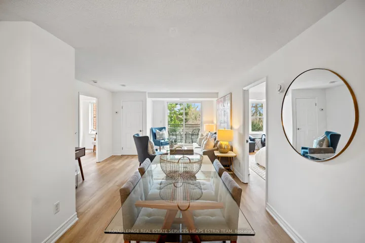 Discover a rare life-lease opportunity at Bethel Green Seniors Residence, situated at the intersection of Leaside and Davisville. This thoughtfully designed two-bedroom, two-bathroom suite offers access to a wide range of local amenities within an intimate, boutique 19-unit community. The open-concept living and dining area is designed to maximize both space and functionality, with light-filled principal rooms that create a warm and inviting atmosphere. A split-bedroom layout enhances privacy, positioning the primary and second bedrooms on opposite sides of the suite. Recently upgraded with LVT flooring and fresh paint, the suite features one of the building’s quietest exposures. A cozy walkout balcony extends from the living room, overlooking a serene garden setting, an ideal retreat for outdoor seating and relaxation. The kitchen is bright and functional, offering light-toned finishes, ample cabinetry, and natural light. The second bedroom includes a Murphy bed, generous closet space and provides flexibility as a guest room, additional living area, or home office. Bethel Green is a well-maintained residence, perfectly suited for those looking to downsize without compromise while enjoying a close-knit community of like-minded residents. It offers a tranquil, welcoming environment for those seeking an independent lifestyle and a place to truly feel at home.