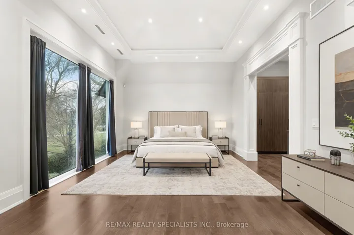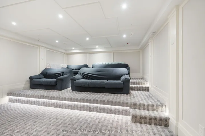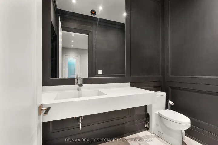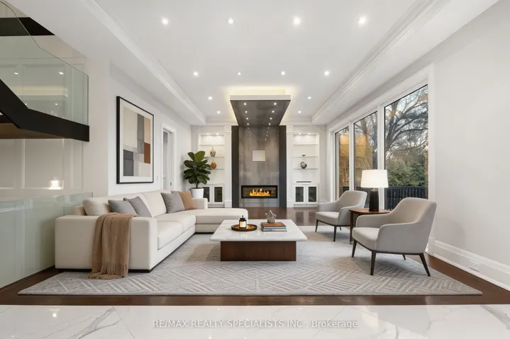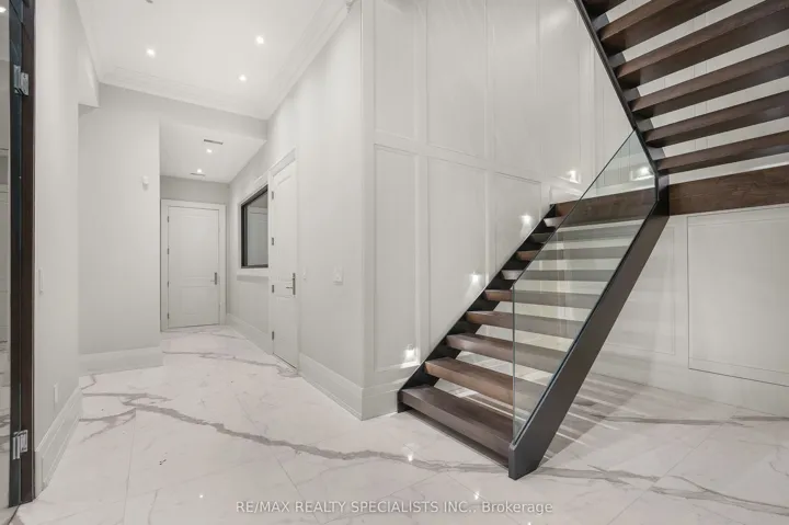 This extraordinary custom residence-over 6,300 sq ft-redefines refined living with impeccable finishes and intelligent systems throughout. Enter a masterpiece of design: dramatic high ceilings on the main and second floors, expansive custom windows, sculpted dropped ceilings with bespoke lighting, and continuous oak staircases and millwork. Every surface has been thoughtfully selected, from limestone at the façade and glass railings to leather waterfall marble counters and quartz-clad cabinetry in the gourmet kitchen-complete with Wolf appliances and Sub-Zero refrigeration. Designed for effortless entertaining and quiet retreat alike, the home features a show-stopping lower level with an 11′ basement ceiling, a glass-fronted car elevator and three-car garage, a private movie theater, fully finished gym, curated wine/vine display, two laundry rooms, and abundant built-in storage. Comfort and convenience are uncompromised: heated floors, central vacuum, state-of-the-art HVAC, integrated smart home controls, and elegant finishes at every turn. Outside, the property backs onto parkland for serene privacy, while interior vistas and high-end details create an immersive living experience. This is an invitation to entertain effortlessly and live luxuriously.