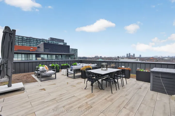 This luxurious penthouse corner suite offers the epitome of urban living with a stunning oversized rooftop terrace, located in one of Queen West’s most sought-after boutique residences, The Plant. The unique 1,335 sq. ft. 3-bedroom, 2 full bathroom suite is wrapped in floor to ceiling windows, flooding the open-concept living area and bedrooms with natural light. The suite provides incredible west and south views (including views of Lake Ontario and BMO field for World Cup fans) and unobstructed north-west views that catch stunning spring, summer and fall sunsets over the Toronto horizon. The suite boasts top of the line finishes and custom designs throughout. The gourmet Chefs kitchen features a butcher block island extension with wine fridge, custom shelving and high-end appliances including gas range cooktop. The primary bedroom features a spa-like ensuite with his & her sinks, a custom-built oversized walk-in closet and combination blackout/semi-blackout blinds. Additional automated semi-blackout blinds are located in the living area. Custom-built walk-in storage area and oversized drawers are located under the stairs for maximum storage. The pièce de resistance of this incredible penthouse suite is the rare and private rooftop terrace. A true outdoor sanctuary finished with custom porcelain pavers with B/I lighting, gas hook-up and hose bib – all encircled by meticulously maintained sedum green roof. This outdoor oasis is one-of-a-kind, perfect for entertaining or quiet relaxation while you enjoy the breathtaking views. Don’t miss this rare opportunity to own one of the limited penthouse suites in this award winning environmentally conscious building (equipped with geothermal heating/cooling systems), just steps from an upcoming new GO station. Suite comes complete with ONE underground parking (with EV charger) and TWO lockers. Recent upgrades include washer/dryer (2025), dishwasher (2025), heat pump compressor (2022) and heat pump motherboard controls (2026).