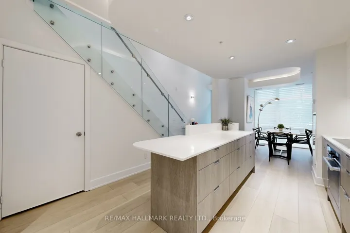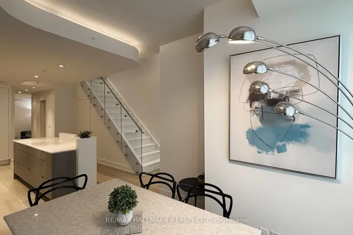 Welcome To This Stunning 2-Storey Condo Townhouse At Studio 2 – A Rare Opportunity To Enjoy The Privacy And Convenience Of A Home With Its Own Street-Level Entrance, While Accessing All The Building’s Resort-Style Amenities. Step Inside Through A Dramatic 17.5 Ft Vaulted Ceiling Foyer That Sets The Tone For Modern Luxury. The Main Floor Boasts 9 Ft Ceilings, Upgraded Vinyl Flooring, And Fresh Professional Paint (2026) Throughout. The Open-Concept Layout Is Perfect For Both Everyday Living And Entertaining. The Chef-Inspired Modern Kitchen Is A True Standout, Featuring Quartz Countertops And Backsplash, Integrated Miele Appliances, Custom Cabinetry By Luxury Maker Irpina Kitchens With Abundant Storage And Pull-Out Drawers, A Large Centre Island, Pantry, And Deep Undermount Sink. A Striking Floating Curve Ceiling With Cove Lighting Adds Elegance To The Kitchen And Dining Area. The Spacious Living Room Offers Versatility – Easily Convertible To A Third Bedroom – With Direct Access To A Convenient Full Washroom. A Sleek Modern Glass Railing Staircase Leads Upstairs To The Private Sleeping Quarters. The Larger Primary Bedroom Is A Serene Retreat With His-And-Her Closets, Expansive Windows, And Beautiful Curved Ceilings. The Ensuite Bathroom Impresses With A Modern Vanity, Dual Kohler Sinks, Hansgrohe Faucets, Floor-To-Ceiling Tiles, And A Generous Walk-In Shower. Flat Ceilings Throughout The Home Create A Clean And Contemporary Feel. Private 105 Sq Ft Outdoor Patio With Gas Line For BBQ, Water Hose Hookup, And A Green Privacy Fence. This Rare Townhouse Comes With Two Parking Spots And Two Locker Units For Maximum Convenience. Building Amenities: Residents Enjoy 24-Hour Concierge Service, A Fully Equipped Fitness Centre With Cardio, Weights, And Yoga Studio, Media Room, Party Room And Lounge With Bar And Dining Area, Billiards, Sauna, Hot Tub, Rooftop Terrace With BBQs, Guest Suites, Bike Storage, And More.