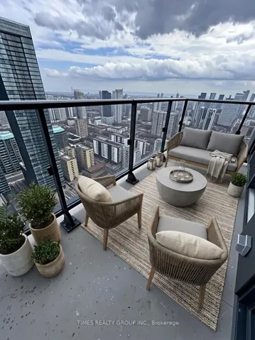Best views and Best location in the Building! Be the first to live in this exceptional 41st floor corner unit with a massive wrap around balcony that is a rarity in the building. Welcome to the highly anticipated Charles at Church, a striking new residence defined by bold architectural design and refined, livable spaces. This brand new, never-occupied 2-bedroom, 2-bathroom corner suite captures a coveted southeast exposure with views of Lake Ontario and the CN Tower. Sunlight pours through floor-to-ceiling windows, illuminating every inch of the space.The open-concept layout flows effortlessly, anchored by a sleek, contemporary kitchen outfitted with premium Miele appliances and clean, modern finishes. A huge, wrap around balcony offers an incredible 335 sq ft of outdoor space to relax, entertain, or simply take in the city. Residents enjoy access to an exceptional collection of amenities across the 3rd and 4th floors, including a fully equipped fitness centre, including a yoga/pilates/soundbath studio, an expansive outdoor terrace, elegant party room, chef’s kitchen, and thoughtfully designed entertaining spaces that elevate everyday living. Set in the heart of the Church-Yonge Corridor, this address places you steps from the Yonge-Bloor subway lines, the University of Toronto, Toronto Metropolitan University, and the boutiques, dining, and energy of Yorkville. Every convenience is within reach. Low maintenance fees make this an easy Yes. Some photos are virtually staged.