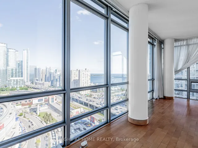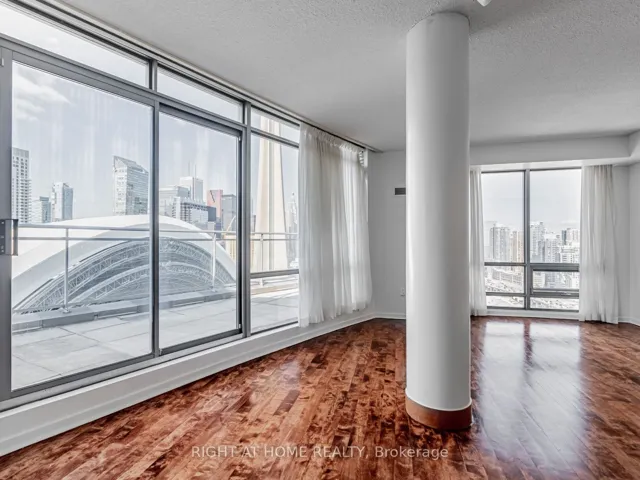 Make this stunning sub-penthouse suite your home! Enviable to a well-placed bachelor, working couple, family or retiree! A 1,263 sq ft corner unit with a 235 sq ft terrace, 10 ft ceilings & wrap around windows for panoramic views of the city, the lake, and CN Tower. Watch baseball games and concerts from your own private terrace when the Rogers Centre dome is opened. Includes parking, locker, and access to the renowned 30,000 sq ft Super Club: the ground floor features a reception/foyer area, meeting room, pool table, lounge-style seating, a bowling alley, a 25-metre indoor pool with a jacuzzi area, and a full-size basket ball court; the second level is the gym complete with cardio machines, weight area, spin studio, and overlooks the pool and basketball court; the third level features a private bookable event space to host parties or meetings; and in the warmer months, the tennis court, dog run area, barbecues, outdoor seating, and tanning deck are opened. Make this condo your home and be steps away from the waterfront, Porter Airport, Rogers Centre, Ripley’s Aquarium, CN tower, Scotiabank Arena, The Well, Union Station/UP Express, downtown’s best dining, transit, and entertainment.