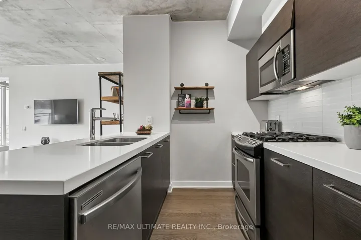 Unique Large 450sf Terrace with gas BBQ, Future “Corktown” Subway station across the street! 700+ Sq Ft Suite, Featuring A Loft Style Open, bright + well designed Floorplan, complete with 9 Ft Exposed Concrete ceilings, designer finishes, large spa inspired Bath with soaker tub + separate shower. A Chefs delight, modern Loft kitchen with Rare gas cooktop, with high end stainless steel appliances (refrigerator, large gas stove, Integrated D/W, Microwave). Entertainers Dream with large outdoor living Terrace, gas BBQ installed, water tap for your plants +hydro outlet. Two large storage lockers Side By Side on P1, perfect storage for outdoor furniture etc. New (2025) Washer & Dryer, Roller binds on all windows. Walk To St Lawrence Market, Distillery District And Waterfront. TTC Streetcar at the doorstep, and Future Subway Station across the street. A Short Stroll to all the Finest Entertainment & Dining Venues! Best part of King Street.