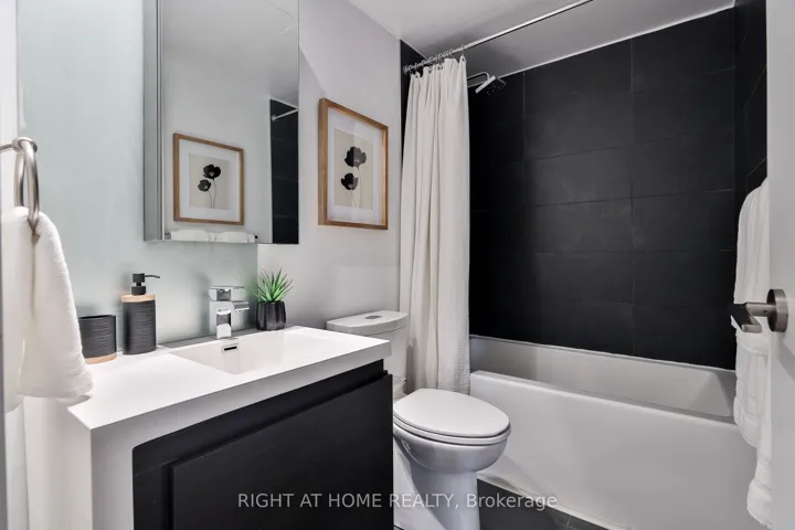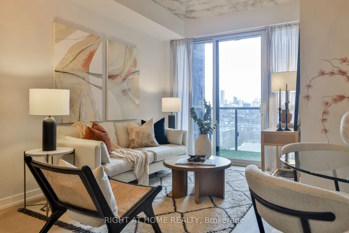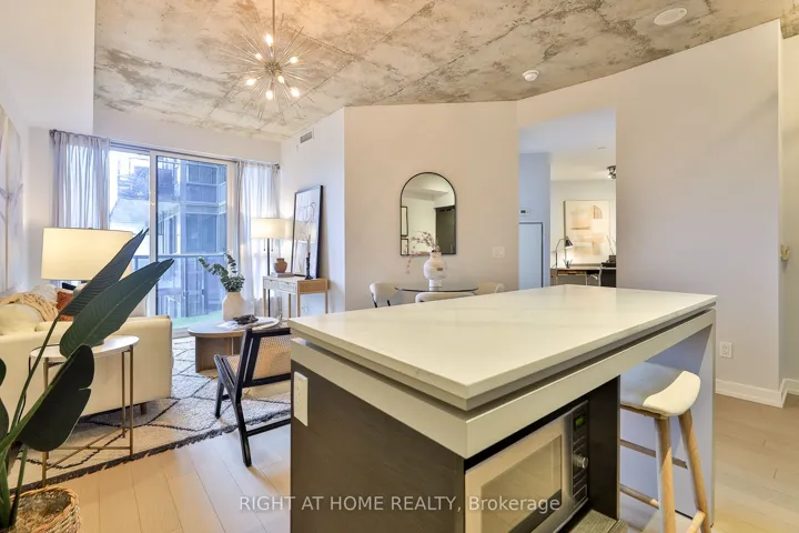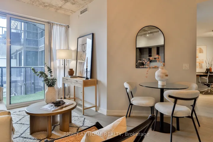 Modern King West living at DNA3, thoughtfully designed by Cecconi Simone. This stylish east-facing 1 bed + den features 9 ft exposed concrete ceilings and a smart layout with no wasted space. Proper bedroom (no sliders!), rich wood floors, a modern kitchen with integrated appliances and a large eat-in island with stone counters. Well appointed bath with soaker tub. Spacious balcony with morning light. Large den is perfect for a true home office. Quiet, well-maintained suite in a prime location – steps to transit, groceries, King & Queen West, Ossington Strip and Trinity Bellwoods Park with easy access to the core. Storage locker included. Amenities include 24-hour concierge, gym with yoga/pilates studio, “Rain Room” spa, rooftop terrace with BBQs, theatre and party rooms.