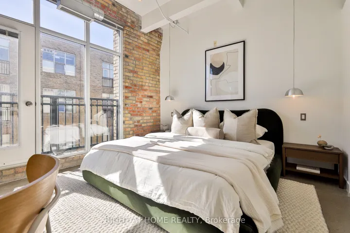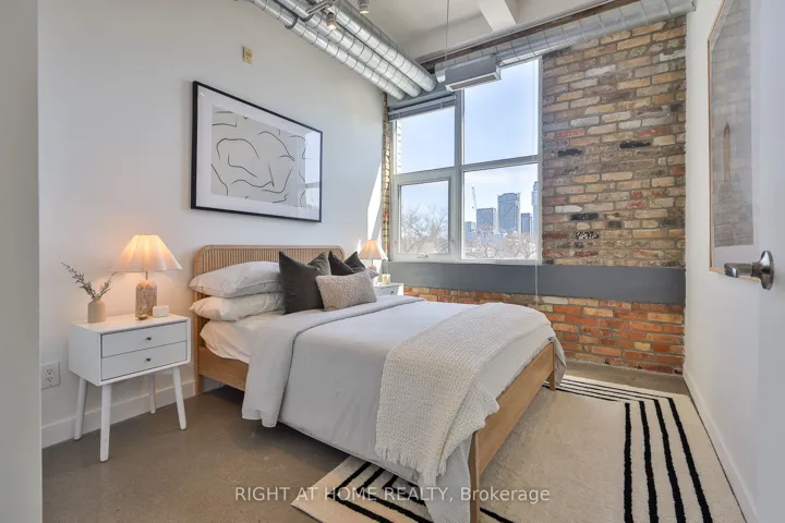 Authentic hard loft living at the iconic Chocolate Company Lofts, directly across from Trinity Bellwoods Park. A rare southwest corner 2-bedroom suite, tucked away from Queen and overlooking a quiet, tree-lined residential pocket – offering the perfect blend of natural light and privacy. Rich in character with exposed brick, original beams, polished concrete floors and soaring ceilings. This thoughtfully designed loft features a functional split 2-bedroom layout, two full bathrooms and a well-appointed kitchen with full-size stainless steel appliances, stone countertops, a large eat-in island and ample storage. The spacious primary bedroom features two walk-in closets and a 4-piece ensuite. Queen West at your doorstep and moments to Ossington, Dundas West, King West, and the city’s best restaurants, cafés, and boutiques – with TTC at your doorstep. Parking, storage locker and a double bike rack included. Building features 24hr security/concierge, a nicely outfitted gym and spacious party room.