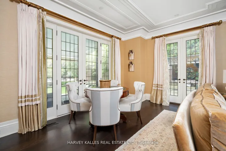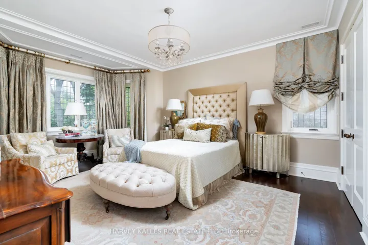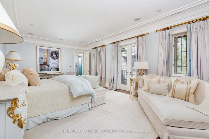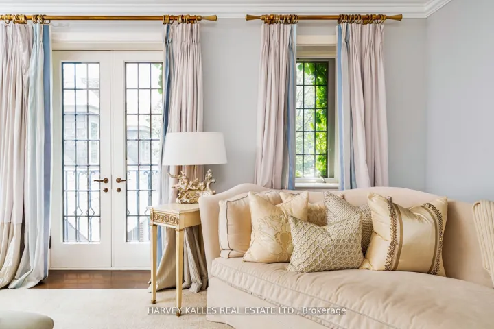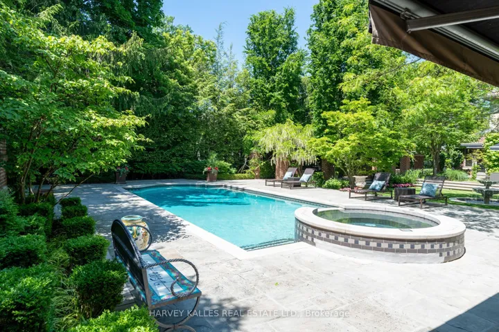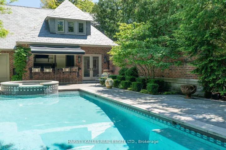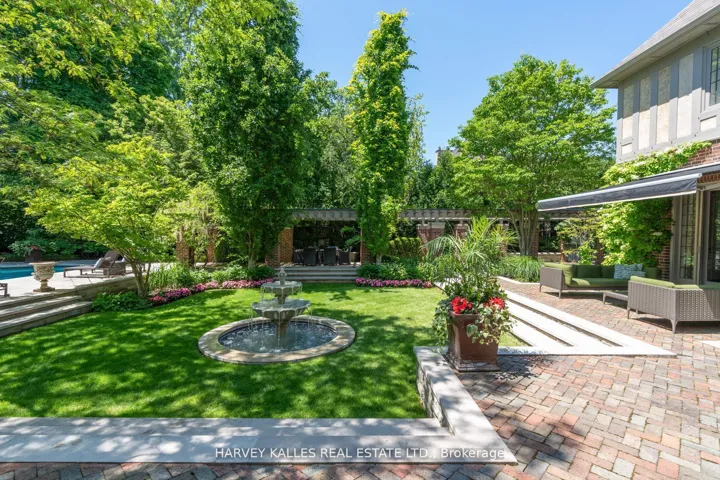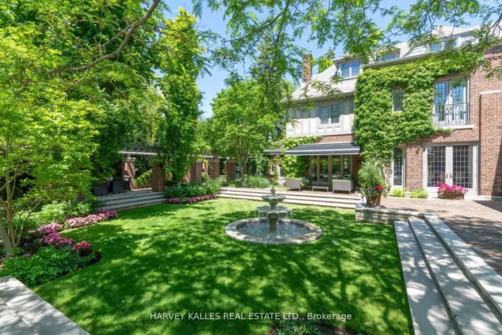 Classic residence sited on an estate-sized 0.54-acre lot on one of the most prestigious streets in Teddington Park, adjacent to Rosedale Golf Club. The home was completely taken back to the studs and restored by Joe Brennan with interior design by Lori Morris, showcasing superb craftsmanship, impeccable finishes, and meticulous attention to the finest materials. Grand principal rooms are ideal for entertaining, complemented by an epicurean kitchen, while the sunroom and family room with walk-out to terraces provide more relaxed living spaces. A richly panelled library offers a quiet retreat. Luxurious primary suite boasts a dressing room with centre island and custom built-in shelves. The third level features a spacious loft with two additional bedrooms and two baths. The lower level includes a wine cellar and a large room suitable for a home theatre. The lovely grounds enchant and delight, framed by a canopy of mature trees, exquisite gardens, a sparkling pool, hot tub, fountain, and an eat-in area shaded by a pergola. At the heart of the garden stands a graceful tiered fountain, where water cascades in delicate streams, creating a tranquil focal point. The charming coach house blends elegance and functionality, featuring a kitchen with an aluminum blind that opens to reveal an outdoor bar, complemented by a retractable awning for shade. Inside , there is an exercise room with walk-out to a basketball court, a loft with vaulted ceiling, a bedroom, and a three-piece bath, ideal for guests. Close to Toronto’s top private and public schools, clubs, shopping, transit, and a short drive downtown. This exceptional property offers a rare combination of architectural refinement, expansive outdoor living, and thoughtful design, creating an ideal setting for both grand entertaining and comfortable family living in one of the city’s most coveted neighbourhoods. A distinguished offering that seamlessly blends timeless elegance with modern luxury and convenience.