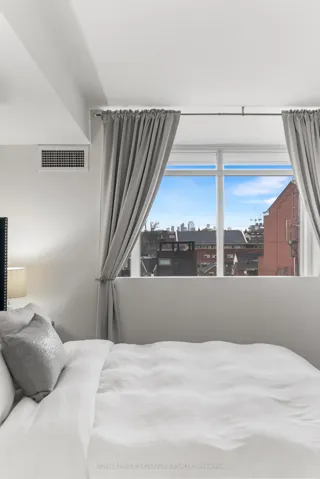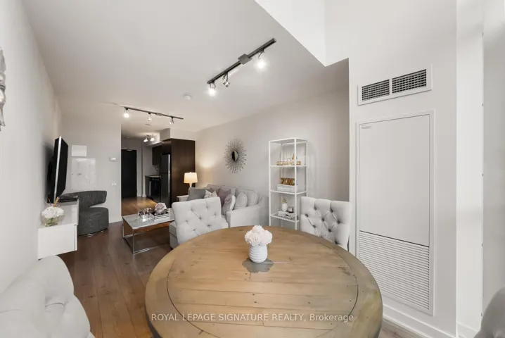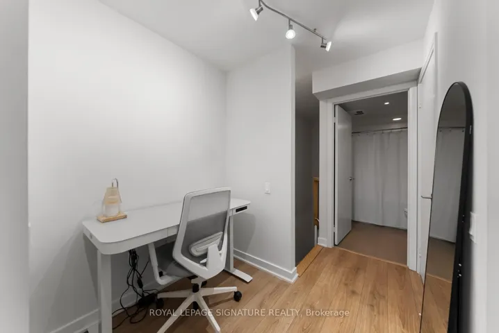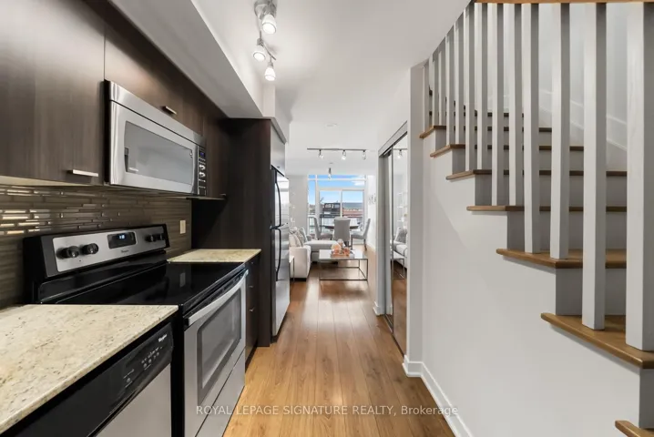 Looking for total tranquility just steps from vibrant King West? You’ve found it. This beautifully designed and meticulously maintained suite offers the perfect blend of peaceful living and exciting city life.Bright and spacious, the thoughtfully designed main floor layout is ideal for comfortable everyday living and effortless entertaining, flowing seamlessly to the north-facing balcony. The kitchen features full-size appliances and functional prep space-perfect for cooking, hosting, and daily living. Soaring ceilings fill the space with natural light, creating an airy, welcoming feel throughout.Retreat to the upper level and enjoy the luxury of a truly separate living space with expansive views. The generously sized primary bedroom features a walk-in closet, alongside a well-appointed 4-piece bathroom with tub, ensuite laundry, and the added bonus of a true den-perfect for a home office, reading nook, or extra closet space.This suite offers excellent storage, including space under the stairs plus an additional locker. Start and end your day in the private, tucked-away courtyard-your own peaceful escape from the city buzz.Located in the highly sought-after King West neighbourhood, you’re surrounded by award-winning dining, boutique shopping, vibrant nightlife, and everything downtown Toronto has to offer. Enjoy the convenience of electric BBQs permitted on balconies and the exceptional value of a LEED-certified, energy-efficient building with impressively LOW MAINTENANCE FEES and utility costs-among the lowest in the area-making ownership here both enjoyable and cost effective. Amenities include a 24-hour concierge, gym, party room, gas BBQ area, and guest suites. Transit Score 95 | Walk Score 99 | Bike Score 95, with the future Ontario Line stop at King & Bathurst adding even more convenience.