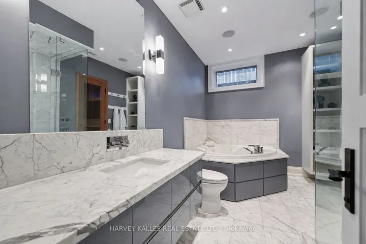 Nestled in the heart of Armour Heights, this exceptional 5-bedroom residence sits on an expansive 55 x 174 ft lot and showcases refined living at every turn. Thoughtfully designed with luxury in mind, the home features a stunning primary retreat complete with a spa-inspired ensuite offering a jacuzzi tub, steam shower, heated floors, and a walk-out to a private balcony overlooking the beautifully landscaped backyard and inground pool.The chef’s kitchen is outfitted with top-of-the-line Sub-Zero, Wolf, and Miele appliances, including a built-in Miele coffee system, and is centred around a generous granite island. French doors from both the kitchen and family room create a seamless connection to the resort- style outdoor setting. Four gas fireplaces enhance the ambiance throughout the home, while the lower level offers radiant heated floors (excluding storage), a fully equipped home theatre, temperature- controlled wine cellar, wet bar, gym with ensuite, spacious recreation area with walk-up to the yard, as well as a jacuzzi and sauna.A grand foyer welcomes you with a striking custom chandelier, leading to a dramatic circular staircase that serves as a true architectural focal point. Each additional bedroom features its own ensuite, ensuring comfort and privacy throughout. Premium finishes include Italian Calacatta marble, custom ceiling details, skylights, and thoughtful design elements throughout. Additional conveniences include laundry on both the main and lower levels with chute, and a Generac generator for added peace of mind. A rare offering defined by craftsmanship, scale, and attention to detail.