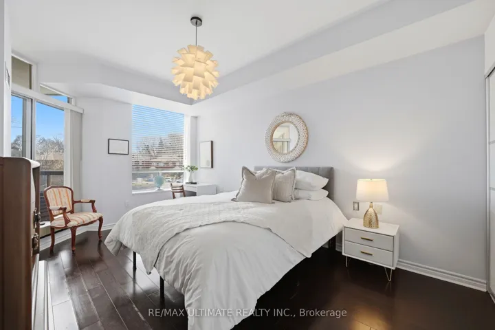 Discover stylish boutique living & urban elegance at The BRAXTON in the heart of Leaside! Welcome to this bright, expansive 1 bedroom, 1 bathroom suite in a highly sought-after intimate building with only 52 suites. This rarely offered unit features a unique open-concept layout from the moment you enter. The main living area offers a seamless flow, ideal for both entertaining and relaxation. A sleek open concept kitchen is complete with upgraded quartz , breakfast bar with wainscotting, slate flooring, potlights and is perfect for everyday living and hosting, Dining area features rich hardwood floors and 9-ft ceilings, creating an inviting and airy space. The generously sized primary bedroom which can easily accommodate a king size bed serves as a serene private retreat amidst the city bustle along with a secondary walkout to terrace, and wall to wall closet with organizers providing ample closet space. A truly desirable feature with the private terrace is the convenient access from both the main living area and the bedroom, enhancing the indoor-outdoor lifestyle, Lights with dimmers create the just the right ambience, Enjoy and relax in the spa-inspired 4-piece bathroom showcasing a relaxing jacuzzi tub. Enjoy seamless connections via the Eglinton subway station and the new Crosstown LRT, making commuting downtown and across the city highly accessible. Just steps to Leaside’s Vibrant shops, Restaurants, Whole Foods, Top Rated Schools, Bayview Village and everyday conveniences. Includes underground parking and locker. A perfect opportunity for first-time buyers, downsizers or investors in an unbeatable location! Amenities include gym, party room, visitor parking and an outstanding on-site superintendent from Monday to Friday Bldg during business hours. Excellent maintained building. This suite is sure to check all your boxes!