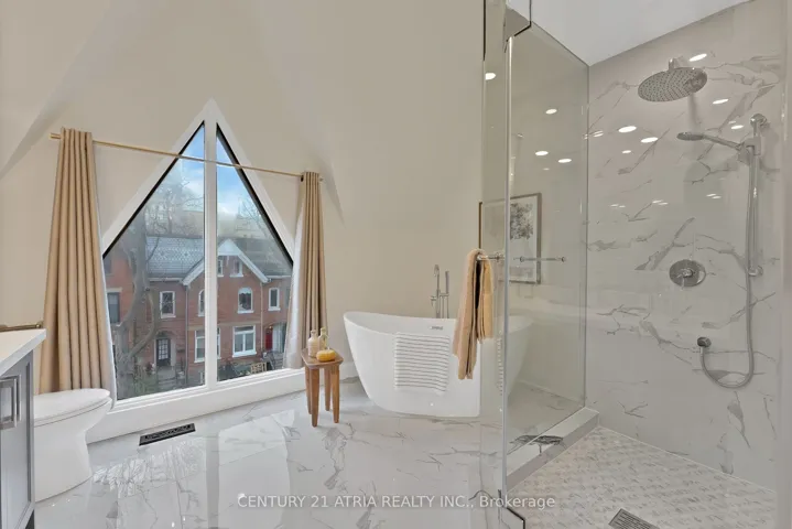 Discover a one-of-a-kind rare gem! Welcome to this NYC-style brownstone townhome tucked into the vibrant heart of downtown Toronto. This freehold character home oozes effortlessly cool living. Where soaring 16.5-foot ceilings flood the open-concept space with natural light, and original exposed brick walls, wood burning fireplace and refinished hardwood floors infuse every level with authentic charm. Tastefully renovated throughout with a modern designer kitchen and spa-like bathrooms, it seamlessly blends historic appeal with modern comfort. A vintage, original spiral staircase winds its way to a stunning private rooftop oasis, an unexpected escape above the city, while a walk-out backyard provides even more serene outdoor space. Spacious bedrooms, including one bathed in natural light from a skylight, complete this one-of-a-kind sanctuary. Quietly nestled in a peaceful community yet just steps from Yonge Street, College Park and TMU subway stations and everything downtown has to offer. This unique home is made for those who crave character, cool vibes, and effortless city living at its very best!