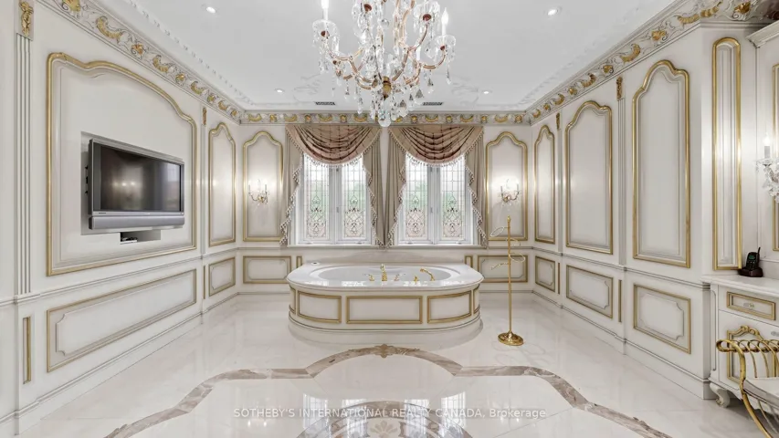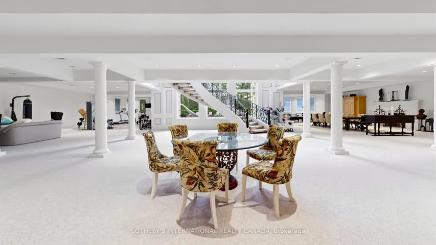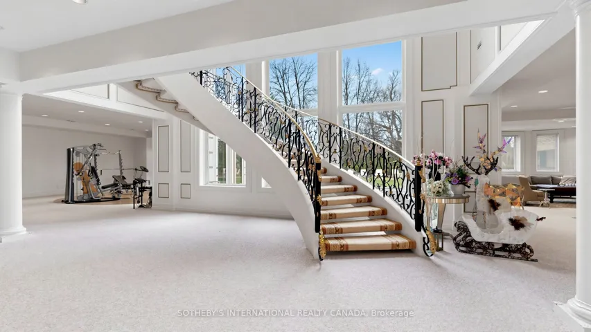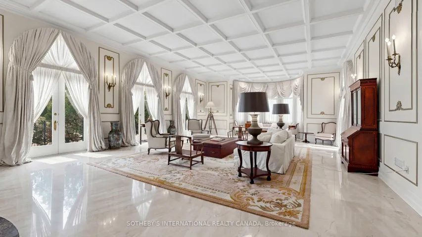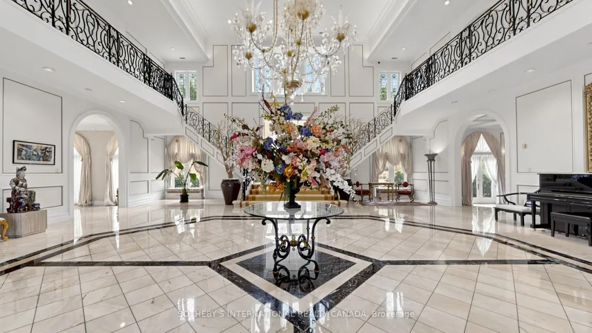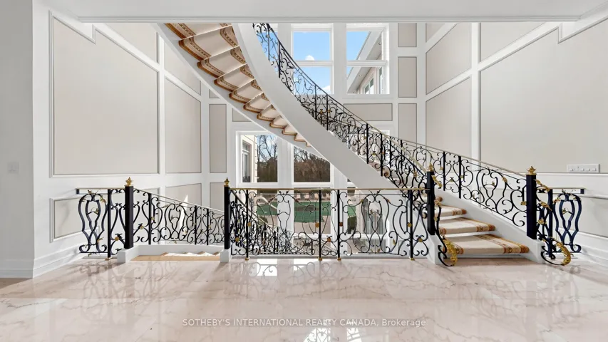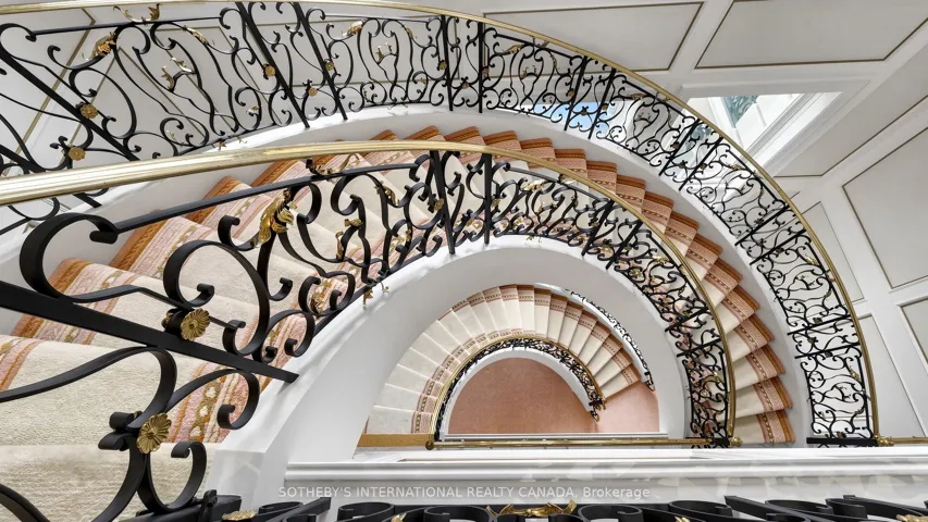 52 Post Rd stands as one of the most distinguished European Neoclassical architectural masterpieces in Bridle Path, Canada’s most prestigious residential enclave. Spanning over 25,000 SF, this gated estate is widely regarded as a “Modern Grand Mansion” of remarkable scale and presence. It seamlessly blends classical symmetry with refined contemporary elegance. Grand, high-arched doorways, intricately patterned marble floors and millwork, sweeping staircases with ornate wrought-iron railings, and monumental architectural proportions establish enduring sophistication and a regal arrival experience. Evoking a Versailles-inspired grandeur, the interiors showcase 14′ and 23′ soaring ceilings, dramatic stair halls and windows, and dazzling chandeliers that cast a warm, luminous glow throughout. Above-grade Appx 15,000 SF/Main + 2500SF/Coach, incl an unparalleled 300-guest ballroom; 5 +2 generously appointed bedrooms, 13 bathrooms, 3 kitchens. Plus an Appx 7,500 SF lower level thoughtfully designed for comprehensive leisure and entertaining. Featuring the wellness spa, sauna and hot tub, fitness centre, wine cellar and an extensive billiard room hosting multiple games. A tunnel-connected coachhouse offers an self-contained apt, and a 5-car-garage. Sculptural 3-dimensional walls gracefully wrap around a private courtyard, creating a striking focal point. Dramatic 3-storey floor-to-ceiling windows frame serene garden and pool views, cultivating intimate dialogue b/t interior and nature. Resort-inspired backyard featuring an outdoor pool with pool-house, a private tennis court, and a children’s playground along expansive lawn and tree-lined tranquil pathway. Set among an extraordinary collection of luxury estates in the Bridle Path, this exceptional location is surrounded by elite public and private schools, renowned Granite Club and Sunnybrook Health Centre. A rare offering defined by prestige, privacy, and elevated lifestyle in the heart of the City.