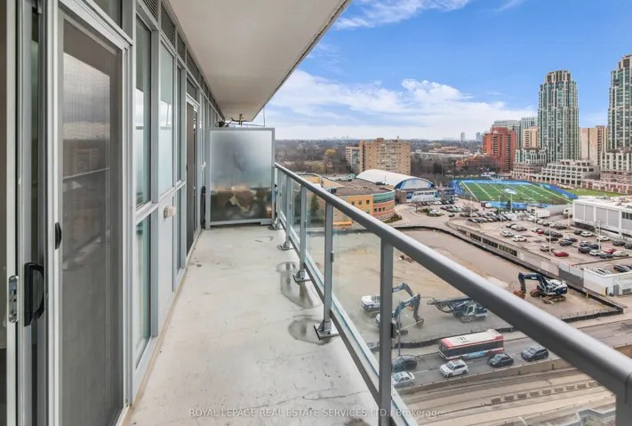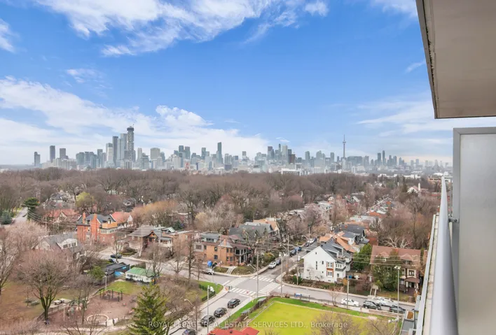 Welcome to elevated Midtown living at 501 St. Clair Avenue West. Perched on a high floor, this stylish one-bedroom residence offers approximately 540 sq. ft. of thoughtfully designed interior space plus an impressive 93 sq. ft. balcony with sweeping city and park views. A rare combination of smart layout, contemporary finishes, and an unbeatable location. Inside, the suite features a bright open-concept living and dining area with wide-plank flooring, soaring ceilings, and expansive windows that flood the space with natural light. The oversized balcony extends your living space outdoors and offers a stunning vantage point over the surrounding neighbourhood, lush treetops, and skyline beyond. The modern kitchen is both sleek and functional, complete with dark cabinetry, stone countertops, full-size appliances, subway tile backsplash, and a generous centre island with breakfast bar seating, ideal for casual dining, entertaining, or working from home. The spacious bedroom includes mirrored double closets, floor-to-ceiling windows, and direct balcony access, equipped with natural gas hookup. A contemporary four-piece bathroom is beautifully finished, while the separate laundry area with stacked washer and dryer adds everyday convenience and valuable storage space. Residents enjoy an exceptional, resort-style amenities, including a 24-hour concierge, fully equipped fitness centre, yoga studio, sauna, party and dining room, theatre/media lounge, games room, guest suites, and visitor parking. The rooftop experience is a true highlight, featuring an outdoor pool, lounge areas, and beautifully designed terraces with BBQs, perfect for relaxing or entertaining in the warmer months. You are steps to cafés, restaurants, boutique shops, grocers, and everyday essentials. The St. Clair streetcar is at your doorstep for quick access to the subway and downtown core. Enjoy nearby green spaces including Cedarvale Ravine, Sir Winston Churchill Park, and Nordheimer Ravine trails.