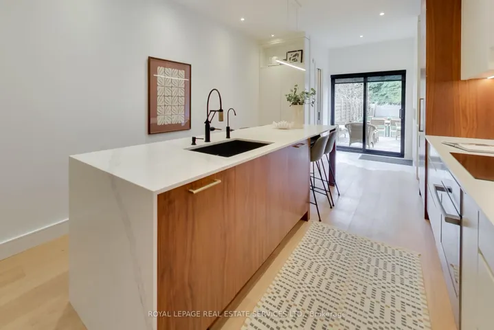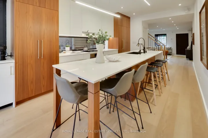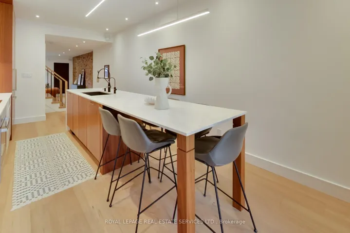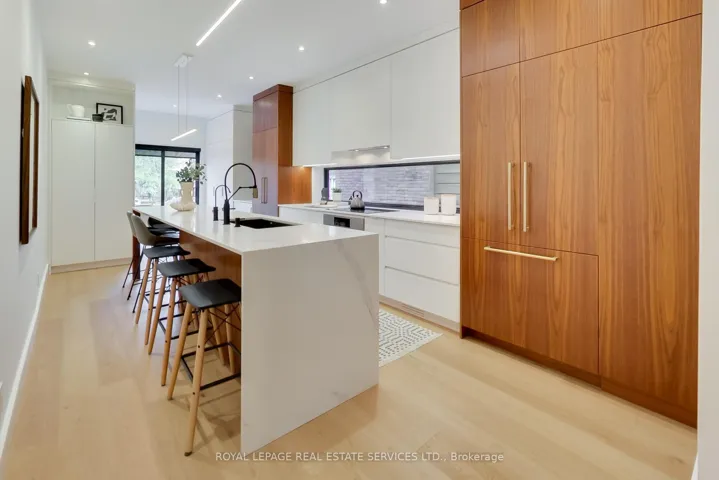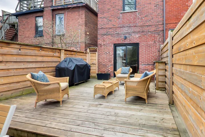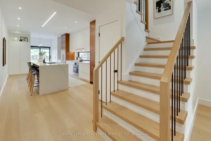 In the heart of the Annex, this exquisitely redesigned three-storey single-family home blends refined design with exceptional everyday livability. Gutted to the studs and thoughtfully reimagined by Palmerston Designs in 2019, it was crafted for elevated family living with warmth, function, and style.The main floor makes an unforgettable first impression with wide plank white oak floors throughout, soaring ceilings, exposed brick, and a rebuilt staircase with sleek modern railings. The heart of the home is a stunning chef’s kitchen with a dramatic 12-foot island, integrated appliances, induction stove, drinks fridge, deep farmhouse sink, multiple floor-to-ceiling pantries, and added windows that fill the space with light. A powder room and coat closets complete this level. Sliding glass doors open to a tiered deck and an extraordinarily deep private garden beneath a mature tree canopy, creating a rare urban retreat for entertaining and quiet family moments alike.The upper floors offer an outstanding family layout. The second floor features two spacious bedrooms, each with a dedicated bathroom, a separate family room, plus a laundry room. The entire third floor is devoted to a luxurious primary retreat with exposed brick, vaulted ceilings with exposed architectural beams, abundant natural light, a walk-in closet, spa-inspired ensuite, private balcony, and a flexible lofted space ideal for a home office, lounge, nursery, or creative studio. The finished lower level, with tall ceilings and a separate entrance, is set up as a dream home gym and offers incredible versatility. A rare opportunity to own a truly design-forward family home on a deep lot in one of Toronto’s most coveted neighbourhoods. Steps to Dupont Subway Station, Jean Sibelius Park, top rated public and private schools and the bustling retail of Bloor Street plus fine dining on the Dupont Strip.