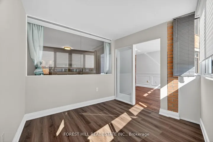 Experience modern living in this FULLY RENOVATED bright, open-concept corner unit. Featuring high-end finishes and functional upgrades, this suite offers a seamless blend of style and value. The renovated kitchen features stainless steel appliances, a large centre island, and a massive, over 130 sqft eat-in area with a walk-out to the balcony where you can enjoy unobstructed South-West views. This suite features modern flooring, pot lights, and a beautiful accent wall in the living room. Added bonus of a spacious sun-filled enclosed den that can easily be used as an office. Enjoy the convenience of an oversized storage room right inside your unit. Low maintenance fees which include all utilities and cable and internet! Enjoy fantastic amenities like an outdoor pool, tennis court, gym, sauna, 24 hour gatehouse and party room. EXRA-WIDE parking oversized parking spot right by entrance. This building is perfectly situated near major transit, schools, grocery shopping and places of worship. This is truly a turnkey suite you can be proud to call your home.