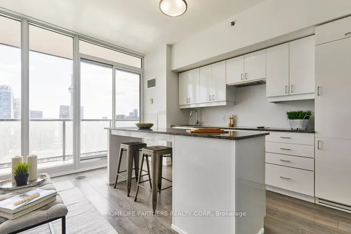 Amazing south facing view of Lake Ontario and the city skyline. Enjoy the view from your large balcony on one of the penthouse floors of The Residences at RCMI. This 494 sq. ft. modern one bedroom suite features 9ft ceilings, large floor to ceilings windows and open concept kitchen, living and dining area. Kitchen features integrated appliances, granite counter tops, large island, modern cabinetry, wide plank flooring. Primary bedroom allows lots of natural sunlight to flow through. Ample closet space is provided as well as a storage locker. Insuite laundry. Freshly painted. Amenities include gym, 24hr Concierge, bike storage and car-share facilities. Unbeatable location, steps from the St. Patrick Subway Station, University Health Network and Mount Sinai hospitals, U of T, TMU, OCAD, Eaton Center, Art Gallery of Ontario, fine dining and financial district. Transit Score of 100, a Walk Score of 99 and a Bike Score of 98.