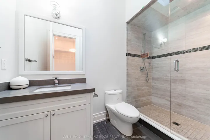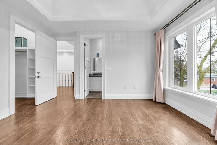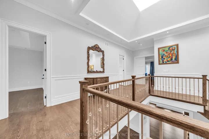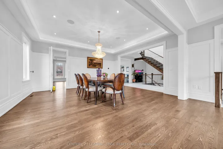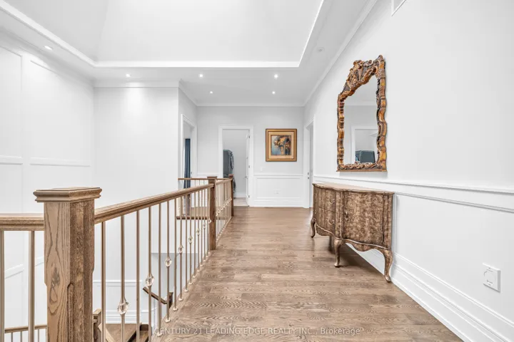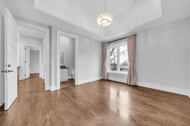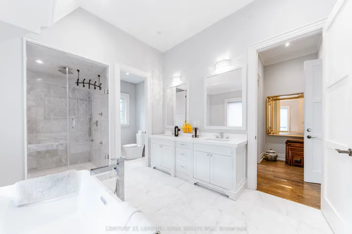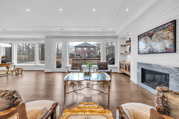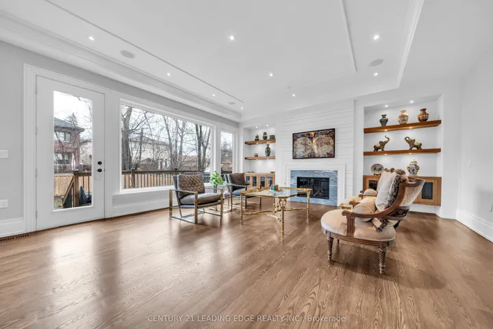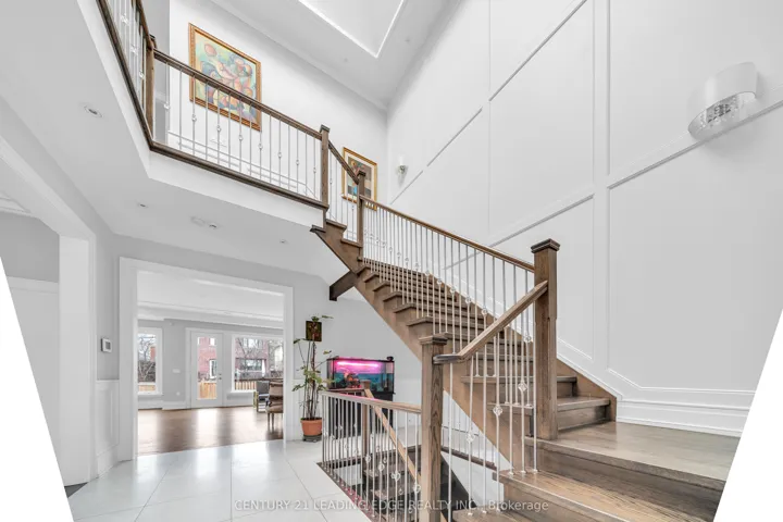 Welcome to 256 Park Home Ave! Stunning custom-built residence showcasing timeless elegance and exceptional craftsmanship. Situated on a beautifully landscaped lot with no sidewalk, this impressive home offers over 6,000 sq. ft. of luxurious living space, including 4,200 sq. ft. above grade and a professionally finished walk-up basement. Designed with a fantastic layout and seamless flow, the home features 10-ft ceilings on the main floor and basement, and soaring 11-ft ceilings on the second level. Rich hardwood flooring extends throughout the main and second floors, complemented by crown moulding, elegant wainscoting, and a blend of LED and halogen pot lighting. A grand staircase with oak steps and iron railings adds to the home’s refined character. The expansive living and dining areas are perfect for entertaining, while the chef-inspired kitchen boasts high-quality cabinetry, stainless steel appliances, Caesarstone countertops, and a spacious breakfast area with walk-out to a large deck, patio, and private backyard. Natural light floods the home through a striking central skylight above the main staircase, along with additional skylights in the second-floor laundry room and a secondary bedroom bathroom. The breathtaking primary suite features a dramatic canopy ceiling, a large walk-in closet, and a luxurious 7-piece ensuite with heated floors. Each bedroom includes its own modern ensuite bathroom, offering ultimate comfort and privacy. The professionally finished walk-up basement is designed for both relaxation and entertaining, complete with heated floors, a fireplace, wet bar, and a nanny or in-law suite with bedroom and 4-piece bath. Additional highlights include three fireplaces throughout, a double-car garage with EV charger, and a driveway accommodating up to six vehicles (eight total parking spaces). Ideally located with easy access to parks, trails, schools, community centres, shopping, and transit-this exceptional home truly has it all.