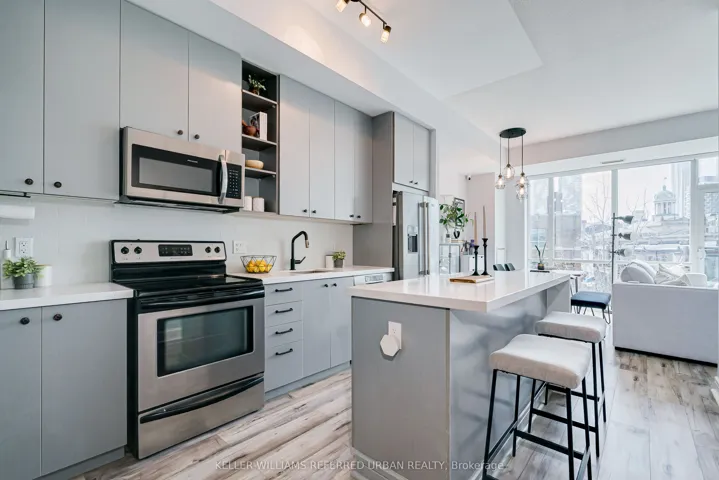 Live large in this oversized 810 sq. ft. one Bedroom + Den suite in the highly sought after The Vu South Condos. With soaring 10 ft ceilings and a full wall of south facing windows, provides the space with tons of natural light and offers beautiful views over Adelaide Street and the lush canopy of St. James Park. The versatile den easily functions as a second bedroom, home office, or flexible living space to suit your needs. The kitchen is designed for both style and practicality, featuring a granite island and an abundance of storage, truly a place for everything. Storage is a standout feature throughout, with custom cabinetry in both the den and living area, plus a conveniently located locker just steps away on the same floor. Laminate flooring runs seamlessly throughout, adding to the clean, modern feel.This is a home that offers space, functionality, and the flexibility to grow into, perfect for exceptional city living. Everything of convenience outside your doorstep. **Check out the 3D Virtual Tour**