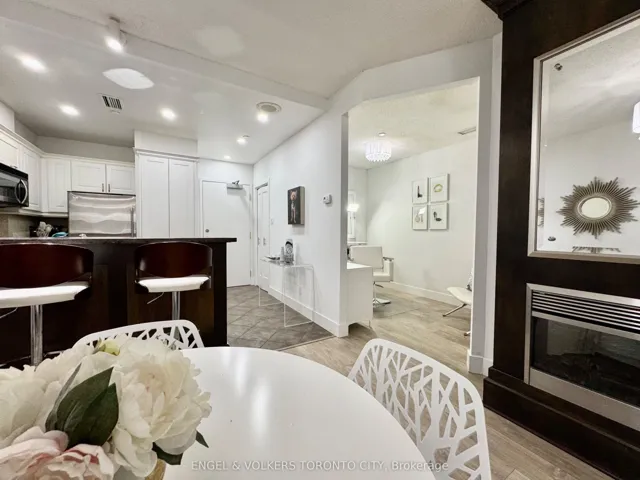 Mesmerizing in the Vibrant Heart of King West, Set within an Intimate Boutique Building, owner-cherished residence offers a refined blend of comfort and style. Breathtaking Views of the CN Tower. Soaring 9-foot ceilings and a rare fireplace create a warm, inviting living space-an uncommon luxury in modern condo living.The thoughtfully designed open-concept layout is both bright and functional, featuring a spacious primary bedroom and an oversized den easily transformed into a second bedroom or private office.The kitchen is equipped with stainless steel appliances and complemented by excellent in-suite storage.A truly exceptional highlight: owned underground parking and a locker located just steps away on the same floor-an incredibly rare and convenient feature.With a perfect Walk Score of 100, you’re moments from Toronto’s finest dining, transit, and entertainment. Residents enjoy a well-appointed fitness studio, ample Free Visitor Parking, and the ease of a low-density building with only 12 floors and three elevators.Sophisticated urban living at its finest.