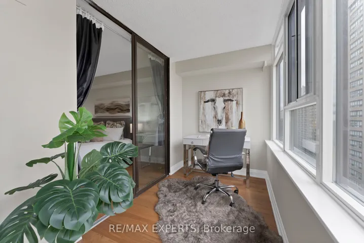 Welcome to Lexington Condominiums! Rarely offered ~1,250 SQ. FT. CORNER/END UNIT in the heart of Yonge & Carlton-an exceptional size that’s increasingly hard to find in today’s downtown market. This 2-BEDROOM + SOLARIUM SUITE FEATURES A DESIRABLE SPLIT-BEDROOM LAYOUT, offering both privacy and functionality. Beautifully renovated with NEW HARDWOOD FLOORING (2026) and fresh paint, the unit boasts a spacious open-concept living/dining area and a functional eat-in kitchen. Generously sized bedrooms include a primary retreat with a 4-piece ensuite and double closets. The bright solarium, surrounded by windows, provides flexible space for a home office, nursery, or additional lounge area. Complete with a large foyer closet and separate laundry room with added storage.Unbeatable location-steps to College Station, street cars, shops, restaurants, and Loblaws at Maple Leaf Gardens. Minutes to Eaton Centre, TMU, U of T, hospitals, and more. Full-service building with premium amenities: 24/7 concierge, indoor pool, gym, running track, squash courts, party room, library, sundeck with BBQs, and visitor parking. ALL UTILITIES INCLUDED in maintenance fees. Well-managed building with a strong sense of community-ideal for buyers seeking space, layout, and convenience in downtown Toronto.