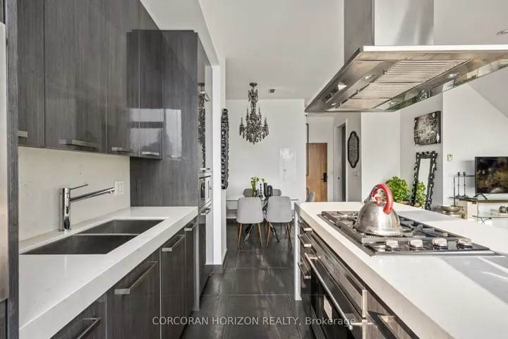Boasting nearly 2,000 sq. ft. of total living space-with 1,300 sq. ft. indoors and a 600 sq. ft. terrace that blends seamlessly with the main level-this two-storey loft penthouse offers a rare, flowing layout perfect for year-round entertaining and effortless indoor-outdoor living.Welcome to a residence that redefines luxury: a truly one-of-a-kind penthouse and the only suite in the building featuring three skylights, infusing both levels with uninterrupted natural light. With 10-foot ceilings and floor-to-ceiling windows, every room frames dramatic, unobstructed views of the city, lake, and CN Tower, easily one of the very best views downtown. Every detail has been meticulously customized-from the sculptural staircase to the bespoke window treatments and abundant integrated storage-creating a home that is equally refined and functional. The chef-inspired kitchen is outfitted with Wolf and Sub-Zero appliances, designed to elevate everyday living and exceptional hosting.Step onto the expansive terrace, fully equipped with a water line and gas BBQ connection, and experience a true entertainer’s haven. From elegant dinner parties to Sunday brunch to quiet nights under the stars, the outdoor space becomes an extension of your lifestyle.Whether it’s morning coffee beneath the skylights or evening cocktails against breathtaking city views, this residence transforms the ordinary into the extraordinary. With chic design, rare exclusivity, and unmatched vistas, this 2-bedroom, 3-bathroom penthouse is more than a home-it’s a statement of elevated living high above the city.