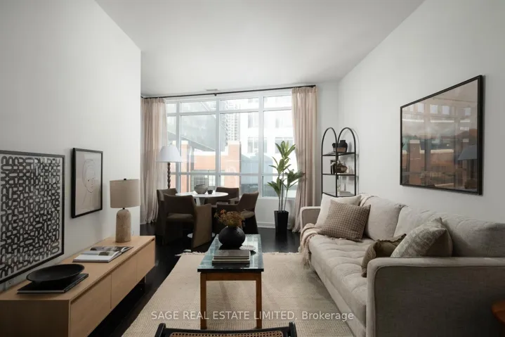 Set along Toronto’s dynamic waterfront, this west-facing 2-Bed, 1-bath condo offers exceptional value. At $702 per square foot, it delivers nearly 900 sq ft of intelligently designed living space making it the largest footprint available among comparable 2-Bed units at this price point. Add in some of the most competitive maintenance fees in the downtown core, and this is a rare opportunity to get more for less in one of the city’s most connected communities. Renovated in 2020, the kitchen anchors the home with a generous quartz island, full-size stainless steel appliances, and a large custom pantry for rare, functional storage. Clean finishes and thoughtful built-ins create a space that feels modern without sacrificing practicality. A proper foyer with an oversized closet creates a sense of arrival before opening into the kitchen, which flows into the open-concept living and dining area. Floor-to-ceiling windows keep the entire space feeling bright and airy. The primary bedroom is calm and efficient, with direct access to a smartly configured 4-piece bath. Double sinks keep mornings easy, and an inner privacy door allows the space to function as a powder room when entertaining. The second bedroom comes complete with a large wardrobe and is ideal for guests, a nursery, or a home office. At 38 Dan Leckie Way, cafés, restaurants, and daily essentials including a nearby grocery store are steps from your door. The lake and green space are under a five-minute walk, and the Rogers Centre is roughly 15 minutes on foot. The Queens Quay streetcar provides quick access across downtown, and the Gardiner is minutes away by car. One underground parking space is included. The amenities include 24-hour concierge service, an exercise room, party and meeting spaces, guest suites, visitor parking, bike storage, a sauna and hot tub, plus a rooftop deck and garden with an outdoor BBQ area