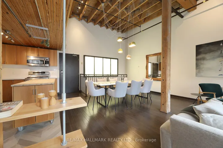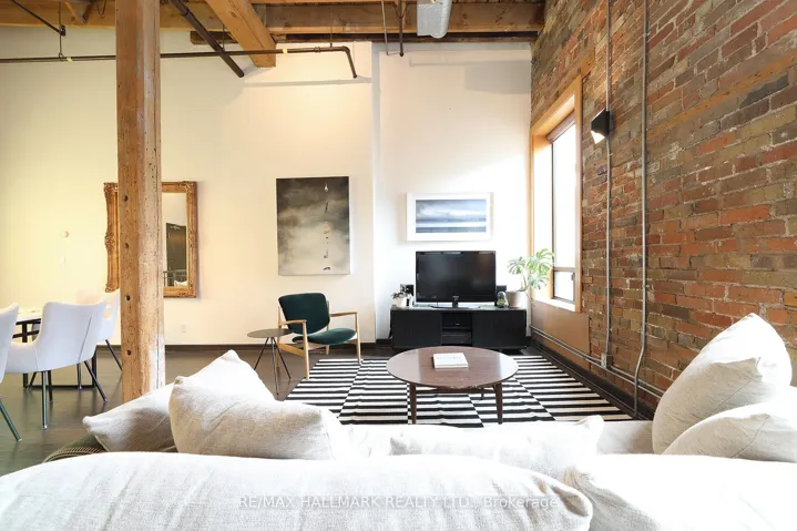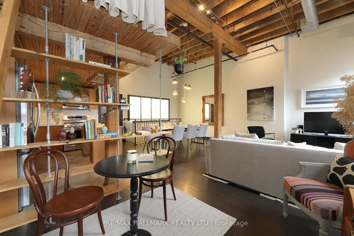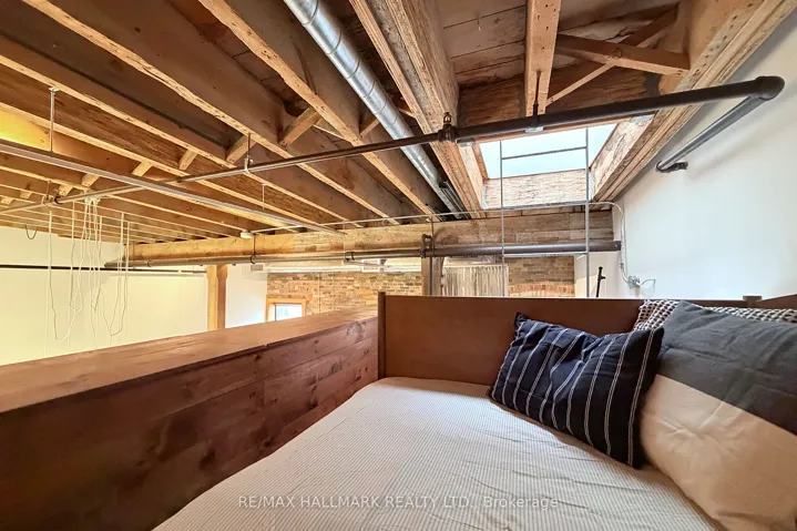 Welcome to the iconic live/work Boiler Factory Lofts at 189 Queen St E–a boutique heritage conversion w/ just 11 exclusive units. This one-of-a-kind, 1300+ sq ft, 2-storey hard loft w/ mezzanine, rare 1+2 bedroom layout, 2 full washrooms, & a rooftop terrace blends historic character w/ modern living. Authentic post & beam construction showcases exposed brick, original wood beams, reclaimed industrial lighting, & soaring 14-foot ceilings w/ oversized factory-style windows. The lower level, w/ its own private entrance, features a primary suite w/ walk-in closet, 3-piece ensuite washroom, & attached den/office (potential 2nd bedroom). Finished w/ hardwood floors, exposed beams, sliding warehouse doors, & a spacious foyer w/ industrial lighting. Includes ensuite laundry & a 4-piece guest washroom w/ cement countertop, porcelain tile, & wood slat ceiling. Upstairs, the main level impresses with soaring 14-foot ceilings, exposed beams, brick, & ductwork. The open-concept living/dining/lounge space is anchored by an island kitchen w/ herringbone vinyl flooring, stainless steel appliances, gas stove, & quartz countertop/backsplash. A separate entrance adds flexibility, while a forest-themed light installation creates a unique focal point. Perched above is a 135+ sq ft loft offering flexible space for sleeping or relaxing, w/ ladder access to the expansive east-facing rooftop terrace (330+ sq ft), fully fenced & ideal for dining or entertaining. The terrace can also be accessed through the common stairway. Located downtown w/ unbeatable access–steps to St. Lawrence Mkt, Eaton Centre, Distillery & Financial Districts, plus top dining & nightlife. The upcoming Ontario Line stop across the street will further enhance connectivity & long-term value. Moss Park is undergoing major revitalization, including a new recreation centre, pools, track, & redesigned green space. A rare chance to own a piece of Toronto’s industrial history–perfect for those who refuse the ordinary.